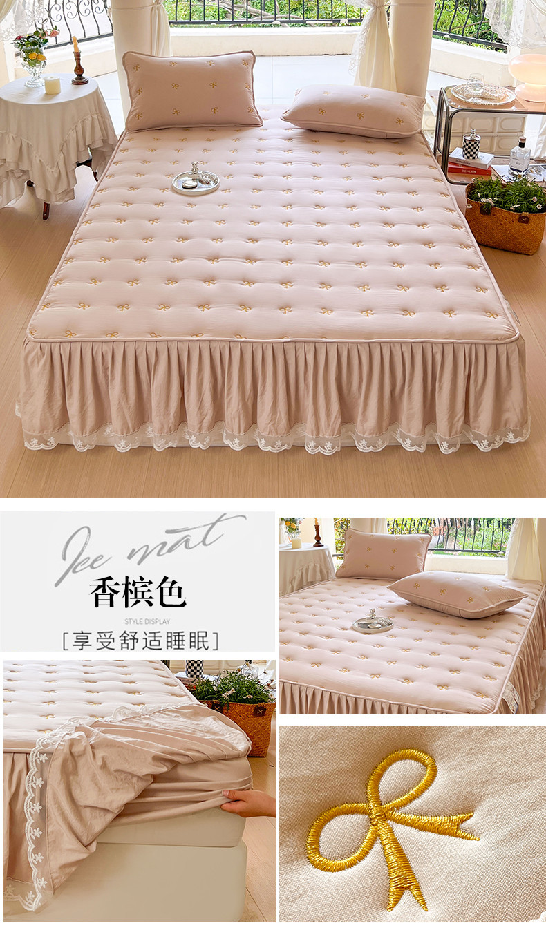 尊康家纺(原磊科) 2024新款亲肤奶昔棉夹棉床裙-风雅 风雅-香槟金,风雅-香槟金