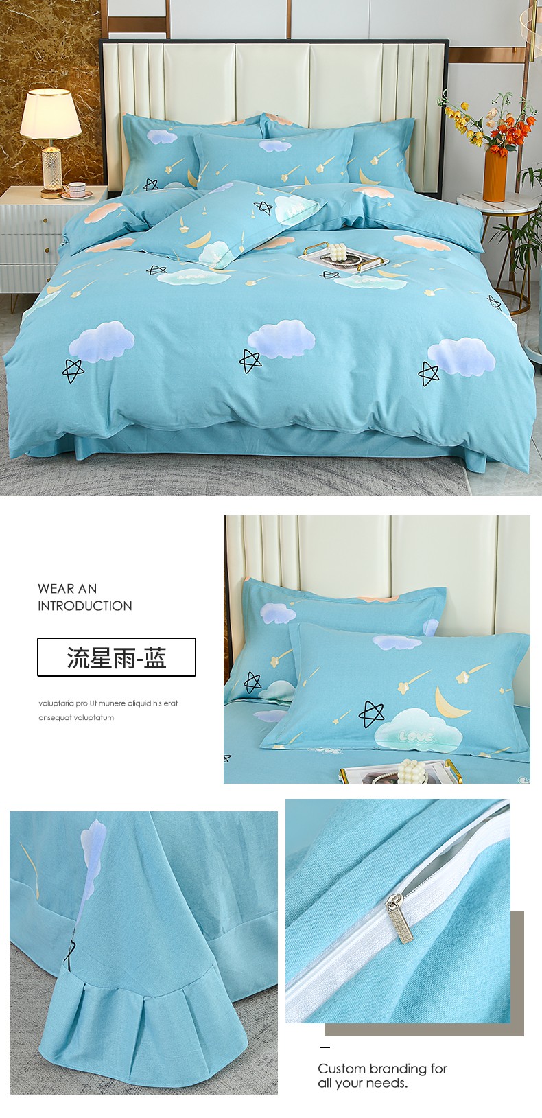 商品名称:畅畅 2024爆款全棉喷气活性印花磨毛四件套 流星雨-蓝
