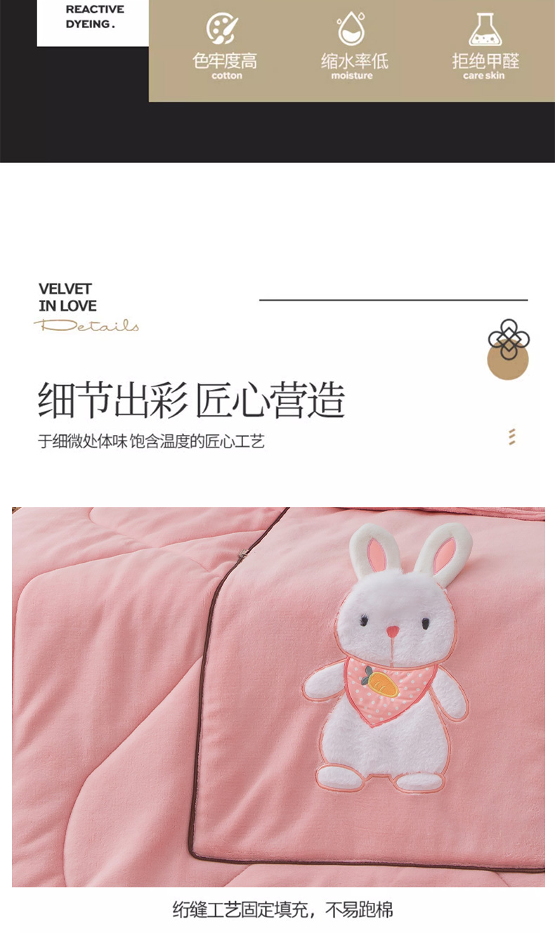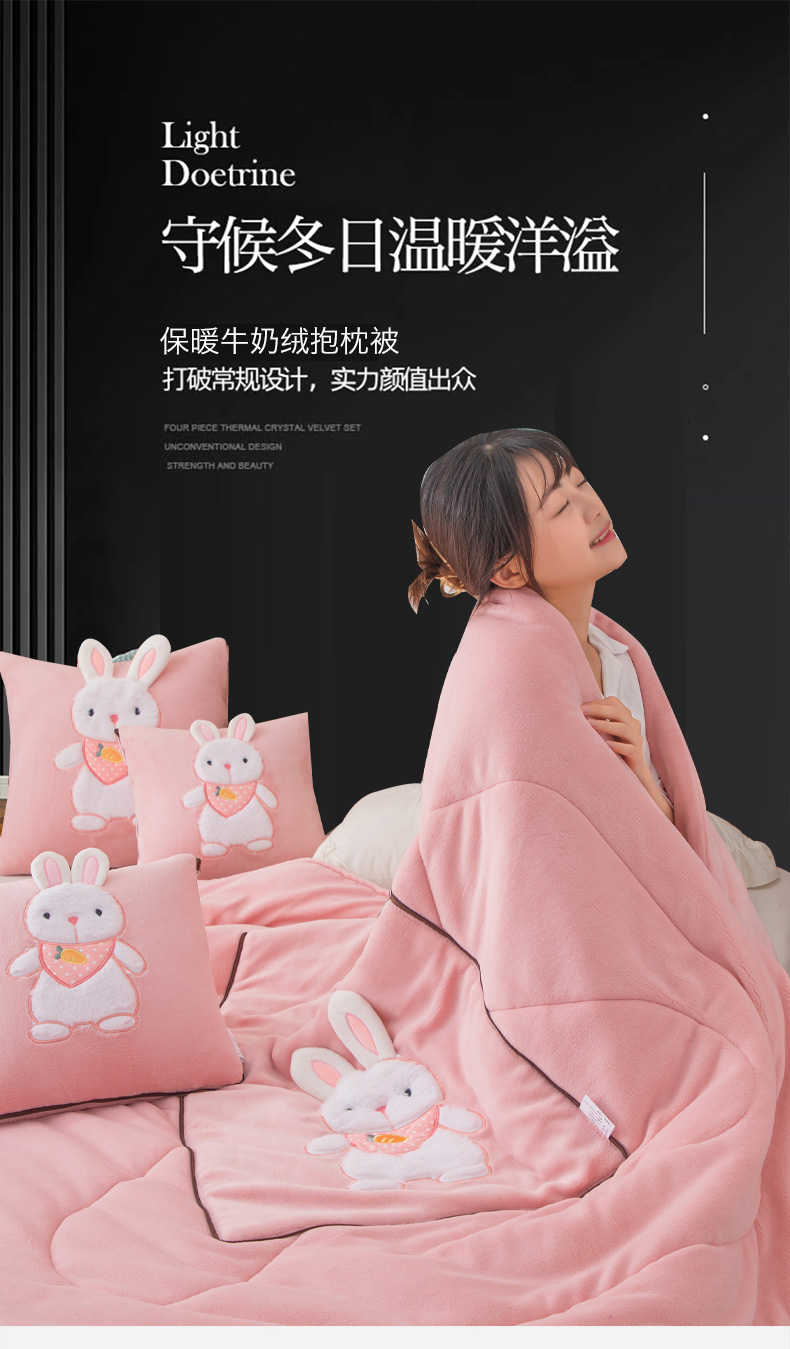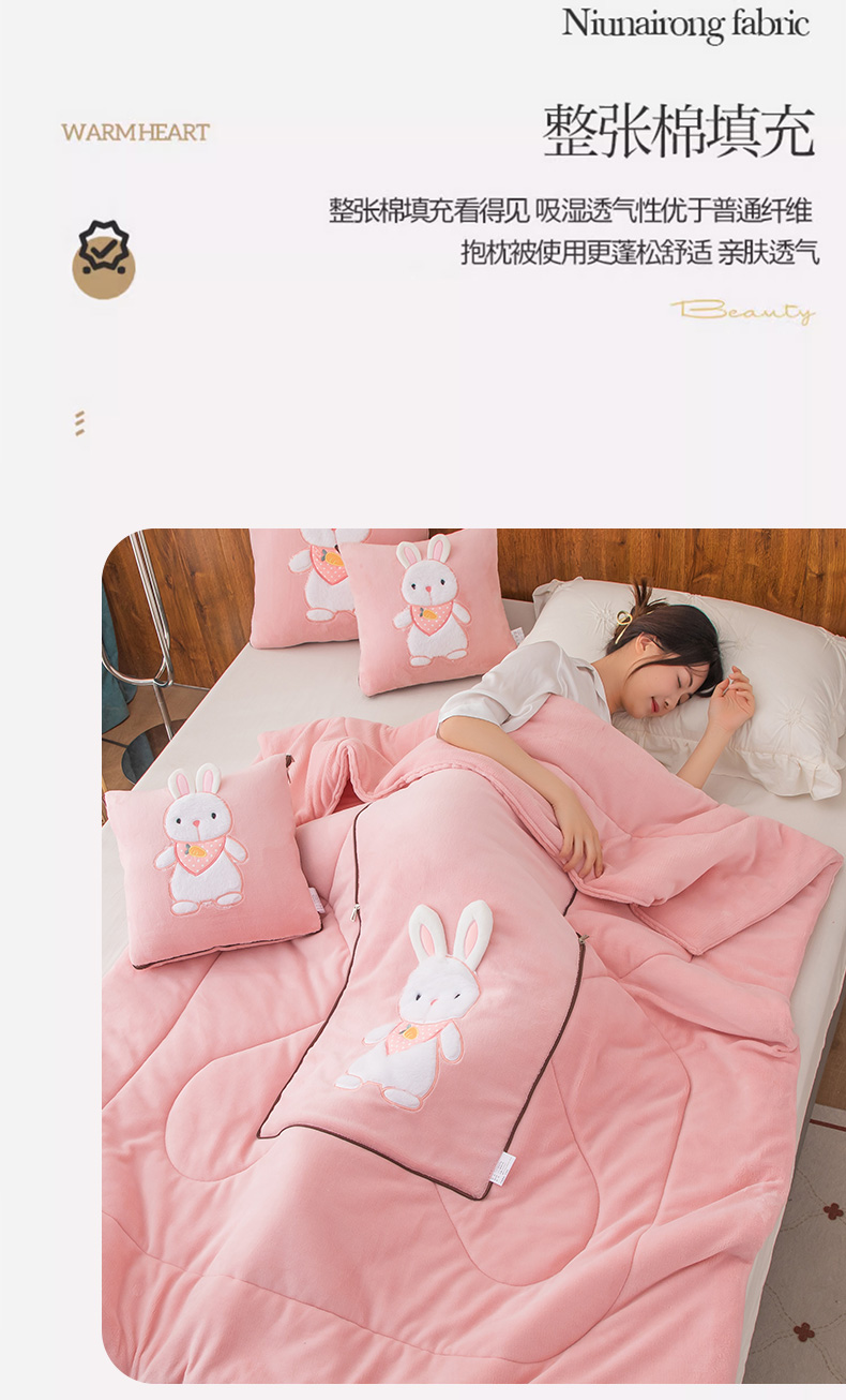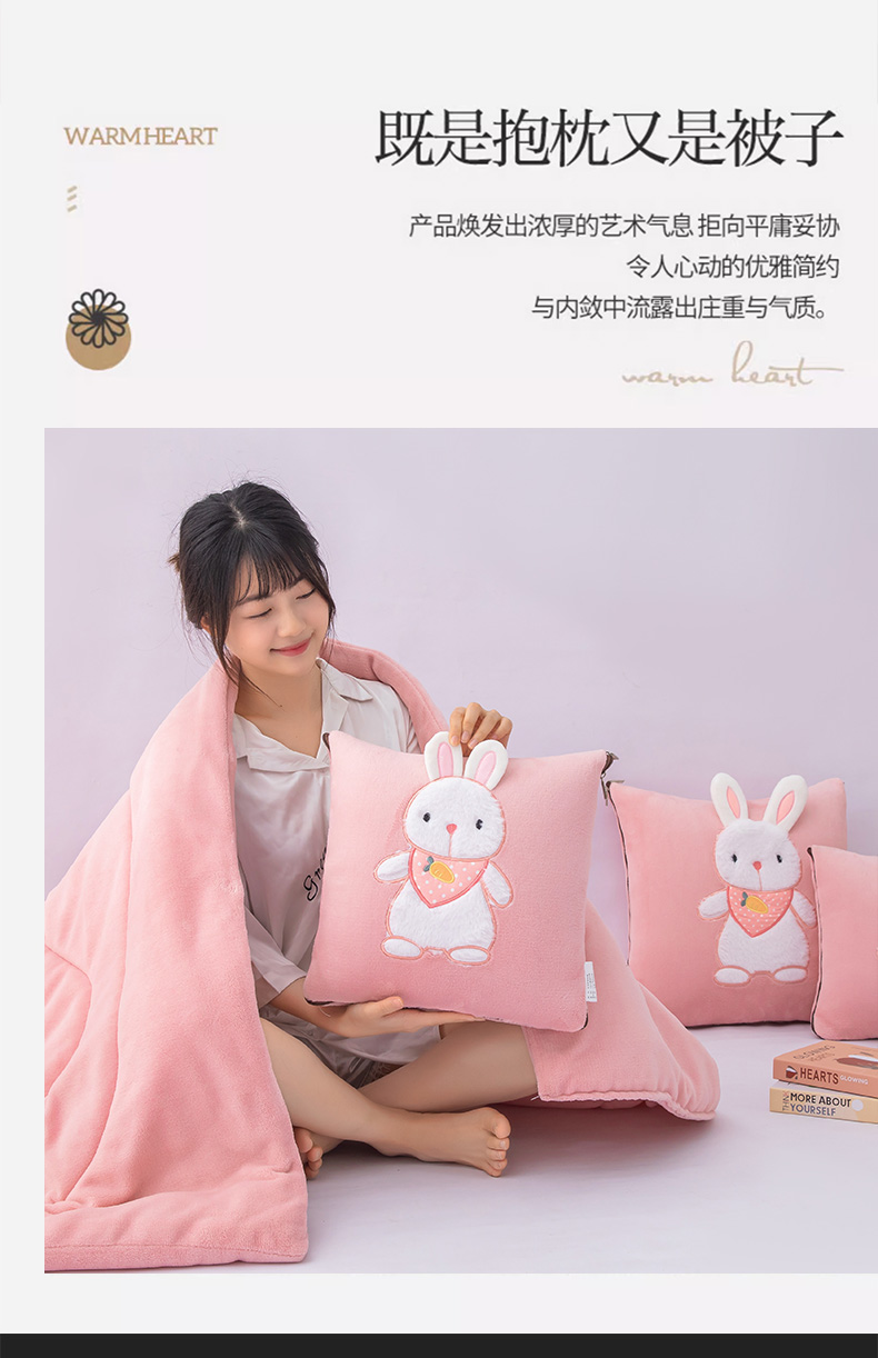商品名称:翰轩家居 2023新款牛奶绒贴布绣萌萌兔抱枕被 萌兔兔-牛奶绒柔粉