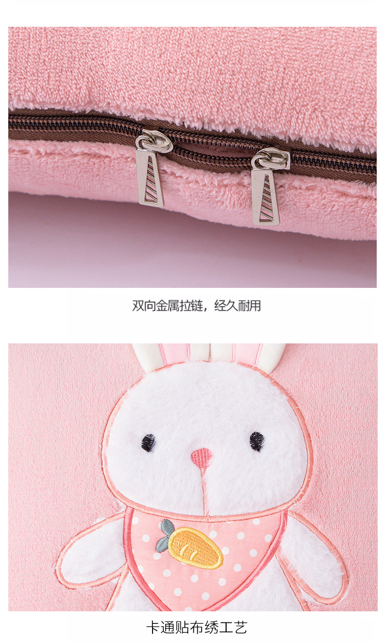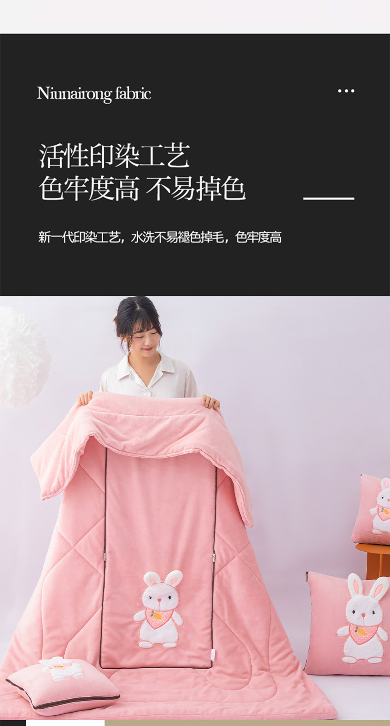 翰轩家居 2023新款牛奶绒贴布绣萌萌兔抱枕被 萌兔兔-牛奶绒柔粉