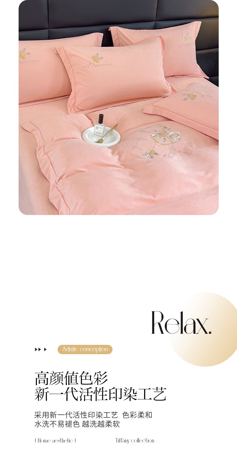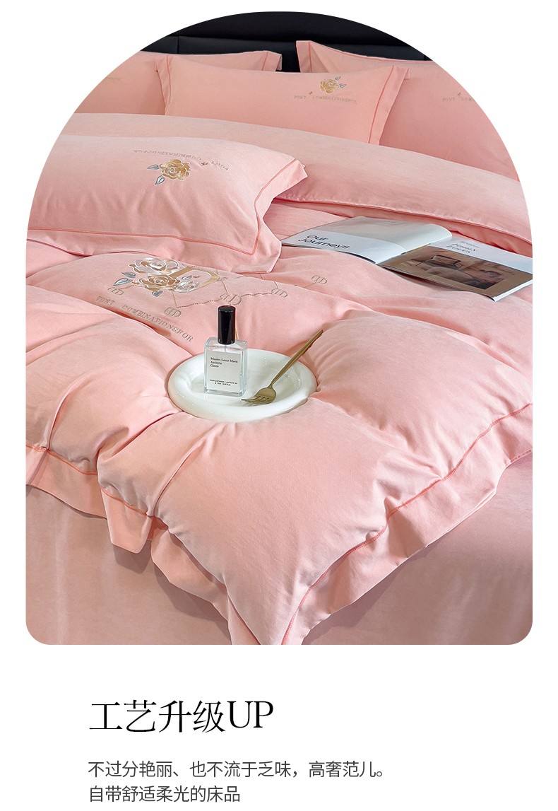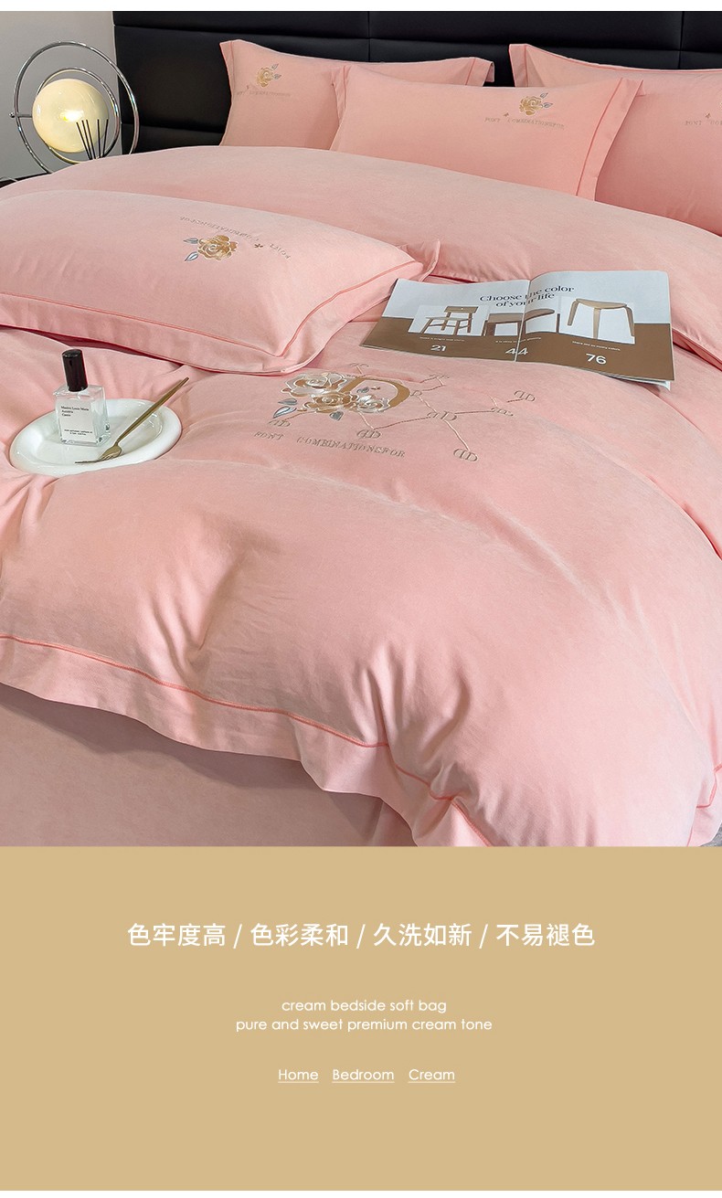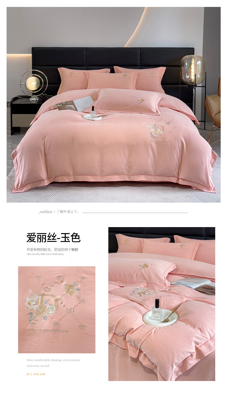 (总)金米诺 2024新款磨毛四件套刺绣系列,豆沙,翡翠绿,抹茶绿,浅姜黄,深蓝,烟灰,烟灰紫