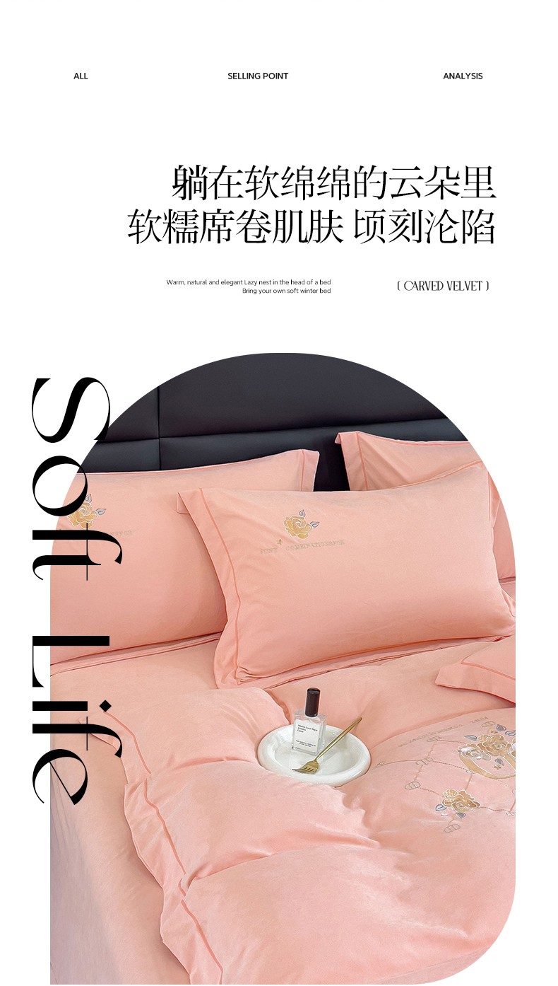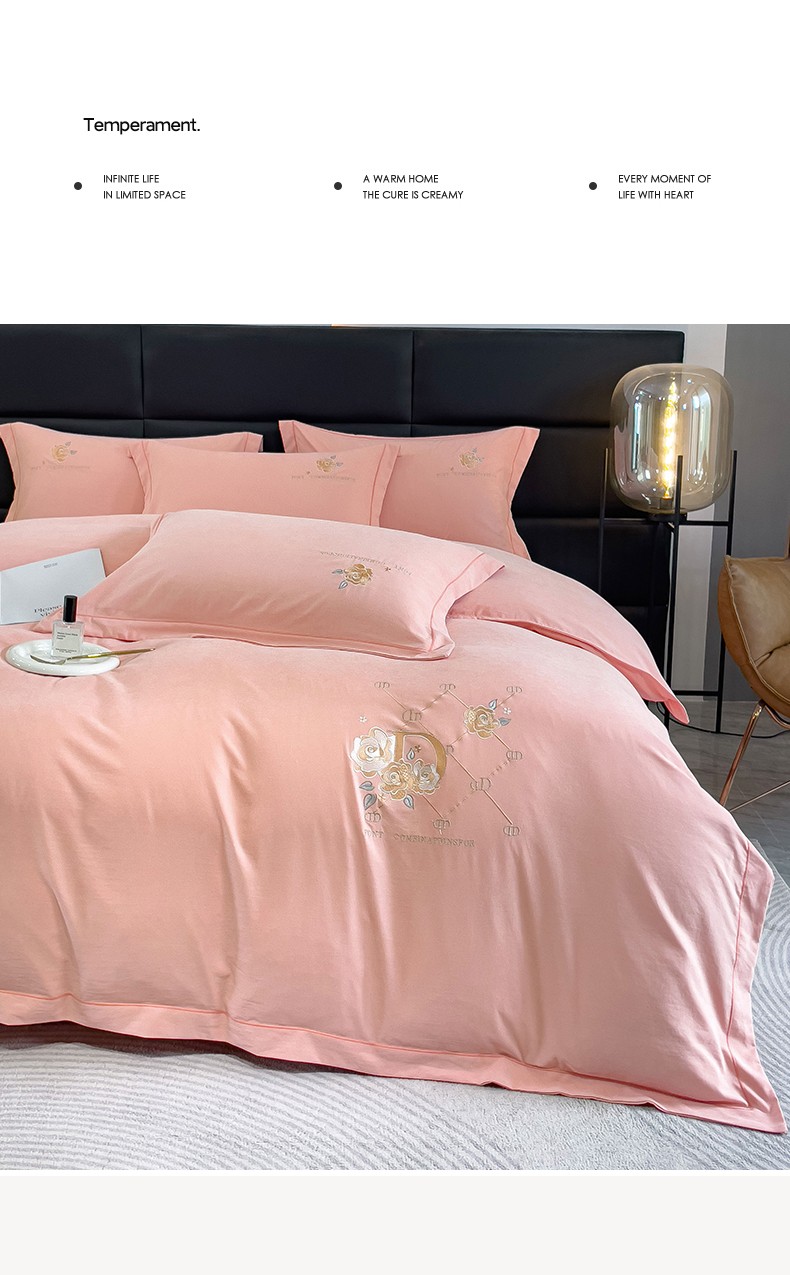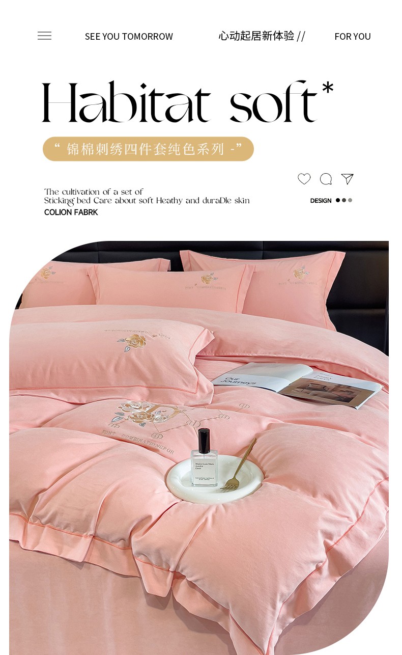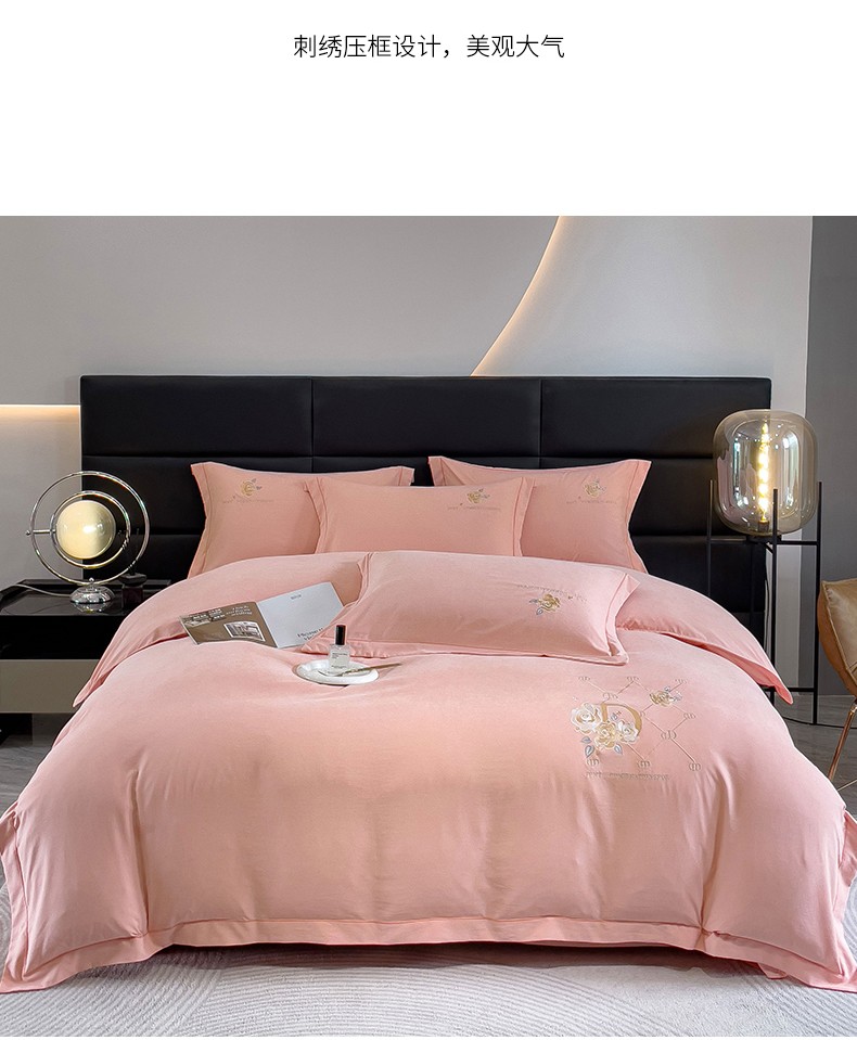 (总)金米诺 2024新款磨毛四件套刺绣系列,豆沙,翡翠绿,抹茶绿,浅姜黄,深蓝,烟灰,烟灰紫