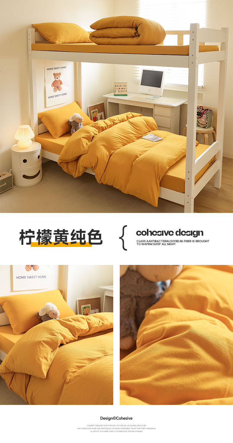 商品名称:寐眠 2023新款全棉针织棉学生三件套 柠檬黄纯色