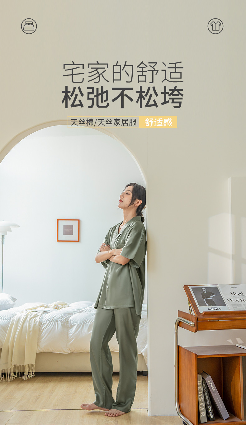 商品名称:总呗旺鹿 新款都市轻奢天丝棉/天丝家居服套装可外穿韩版宽松情侣睡衣