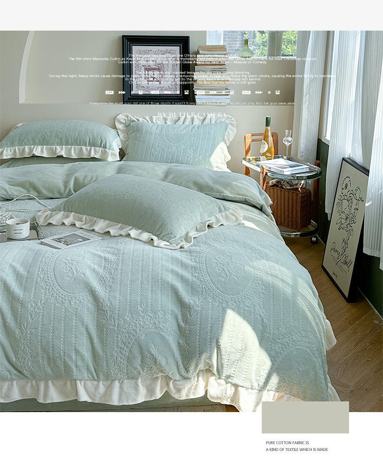 萝莉家纺 2023新款公主风加厚牛奶绒立体压花四件套 菲尔绿