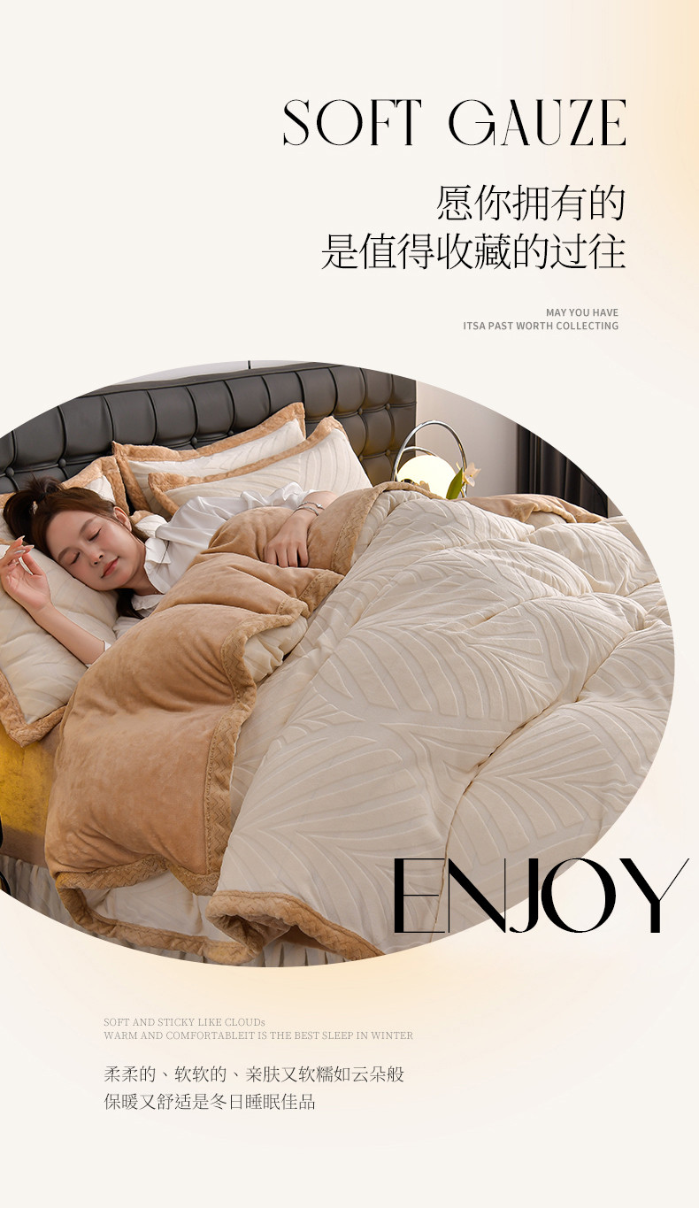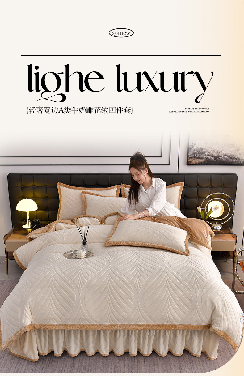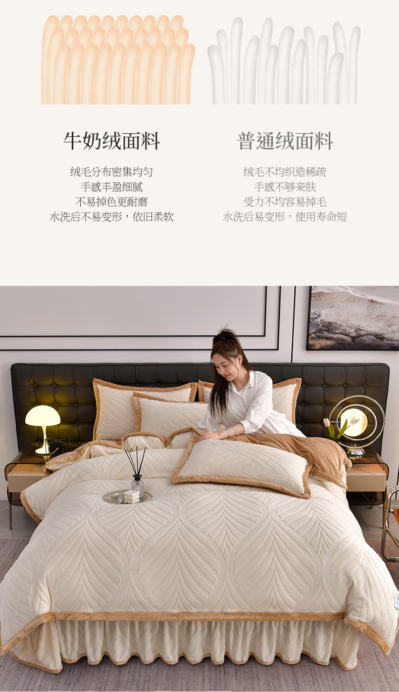 当前位置: 91家纺网 > 商品网购 > 床品套件 > 四件套 > 牛奶绒四件套 > 馨梦缘 2025新款轻奢宽边纯色A类牛奶绒雕花四件套 经典-枫叶奶油白