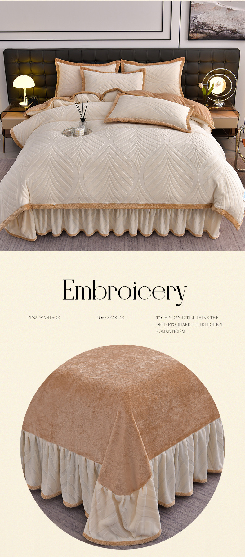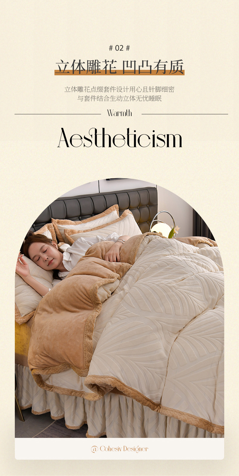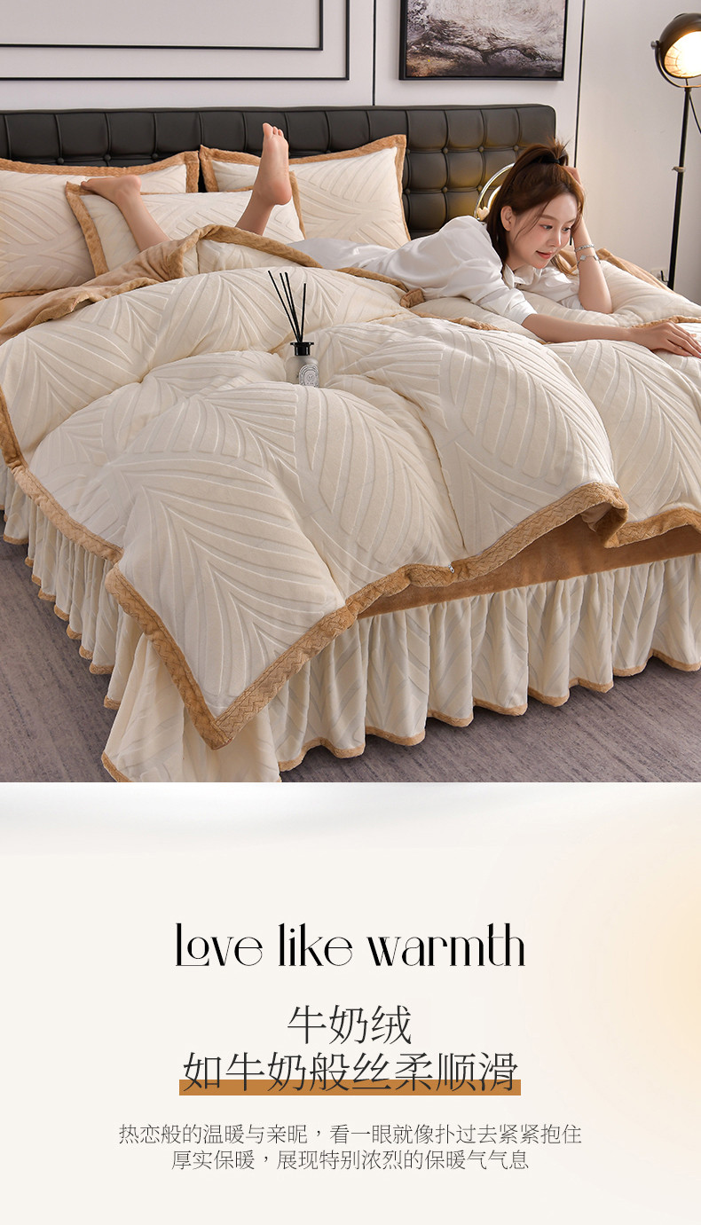 当前位置: 91家纺网 > 商品网购 > 床品套件 > 四件套 > 牛奶绒四件套 > 馨梦缘 2025新款轻奢宽边纯色A类牛奶绒雕花四件套 经典-枫叶奶油白