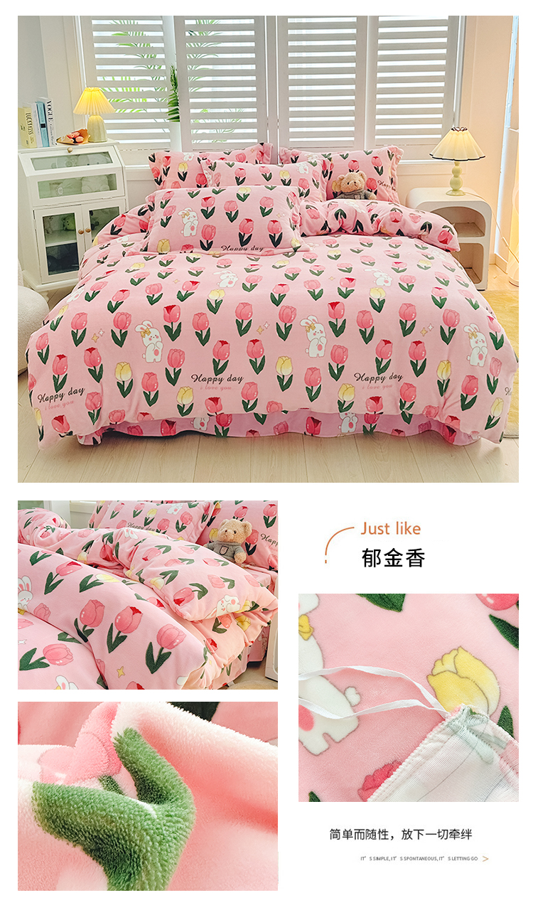当前位置: 91家纺网 > 商品网购 > 床品套件 > 四件套 > 牛奶绒四件套 > 新款230克高克重印花牛奶绒四件套定做定制尺寸 郁金香