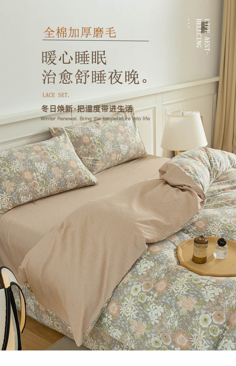 商品名称:绫韵家纺 2023秋冬新款全棉生态磨毛加厚纯棉磨毛四件套系列 秋月