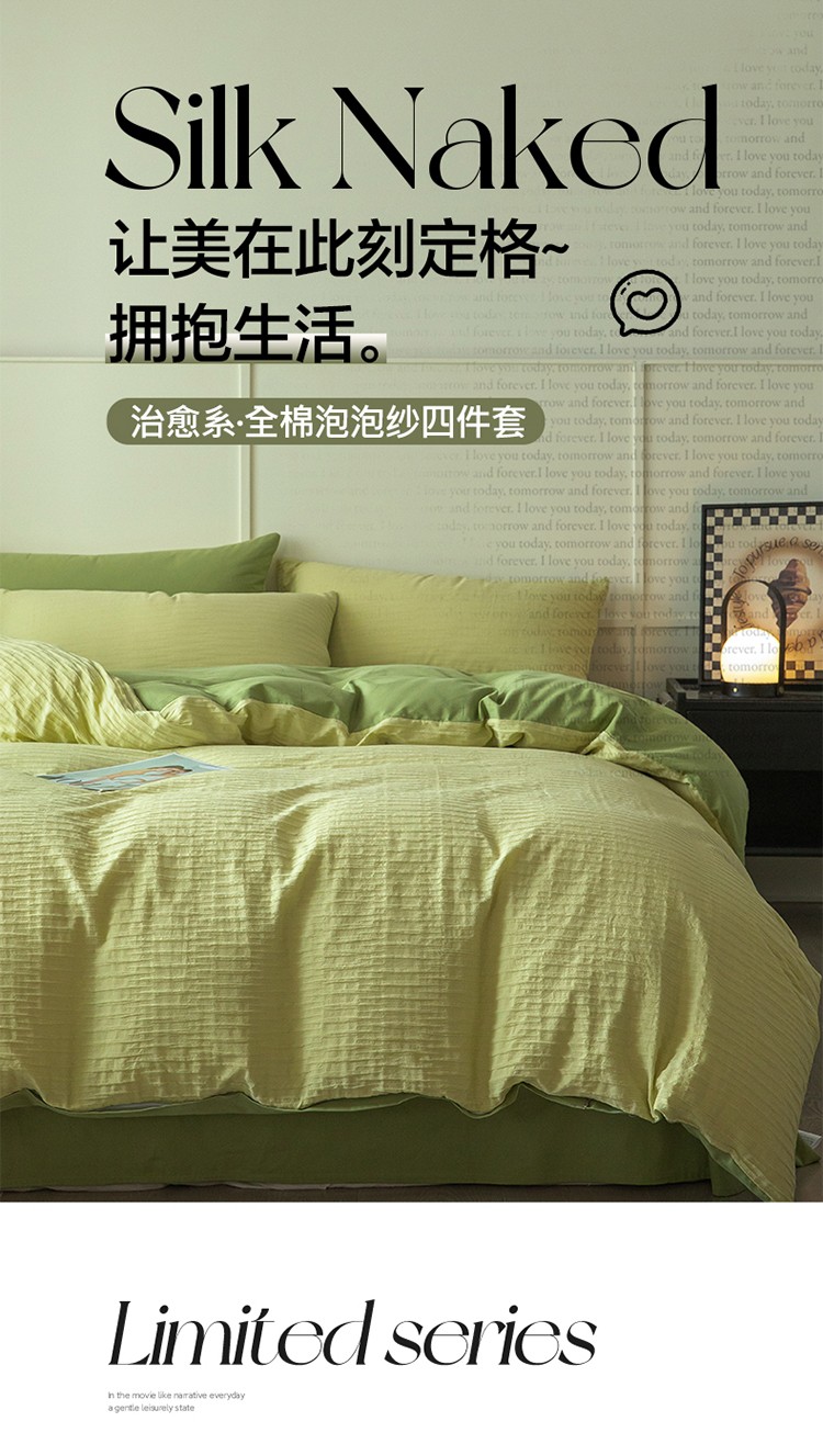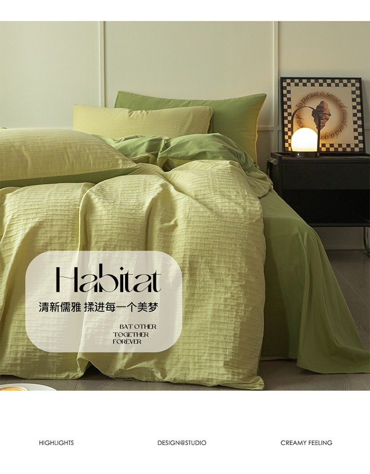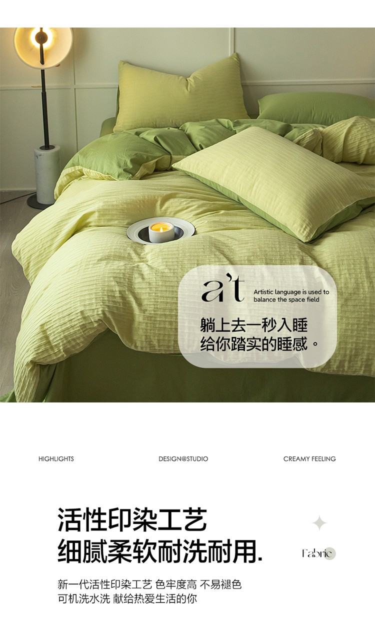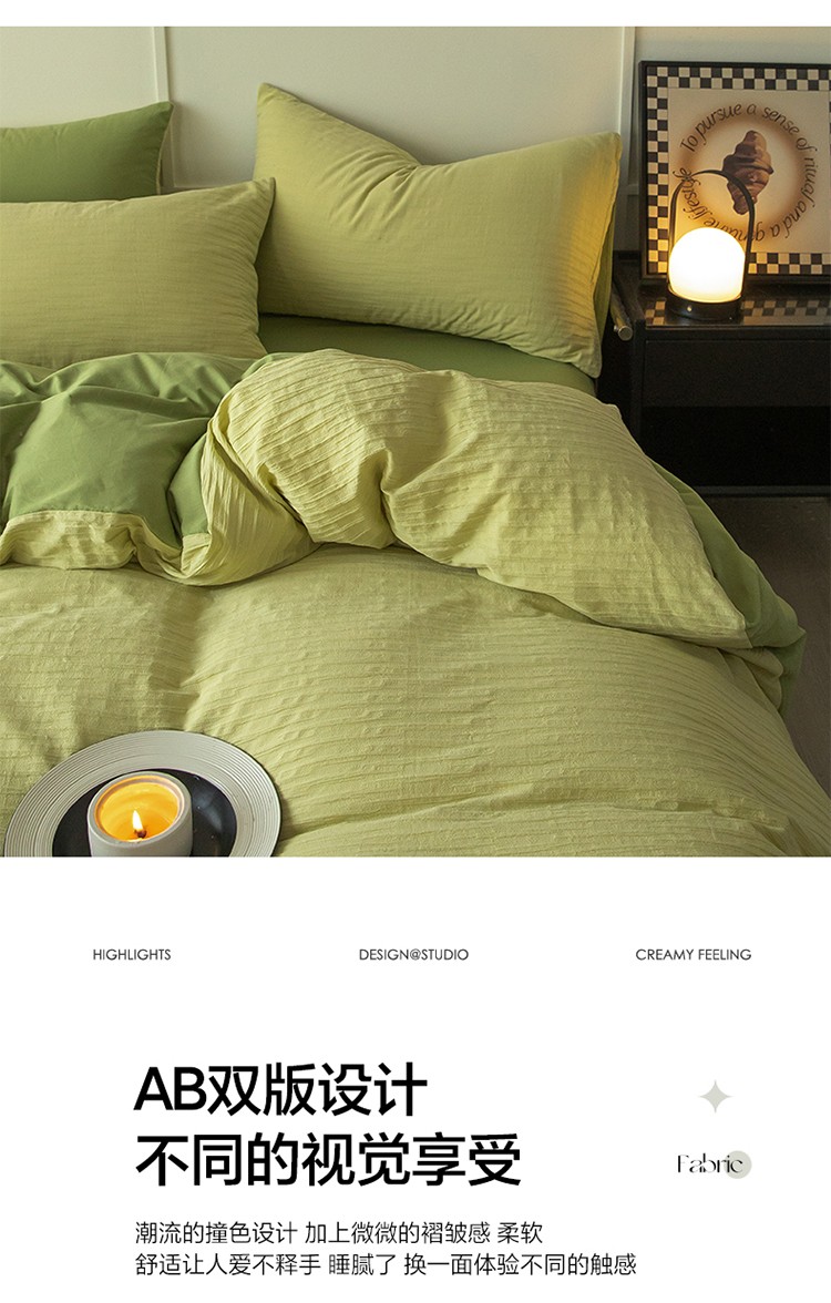 雅居纺2023新款系全棉泡泡纱四件套 泡泡纱-牛油果