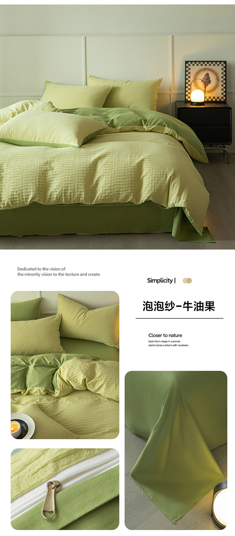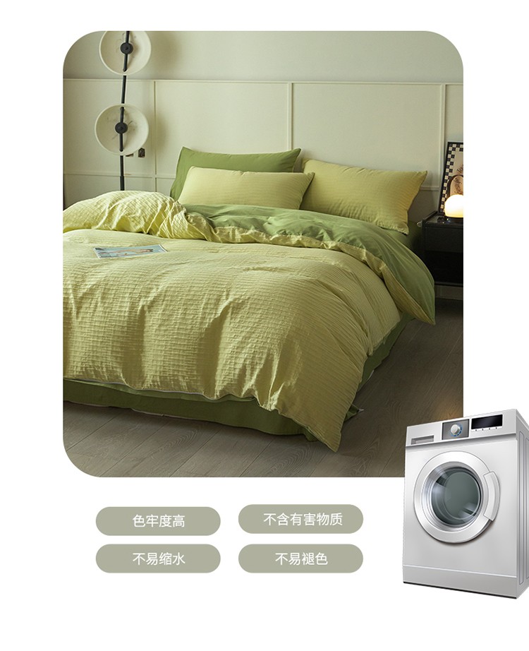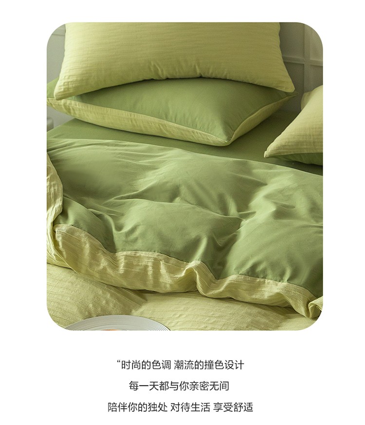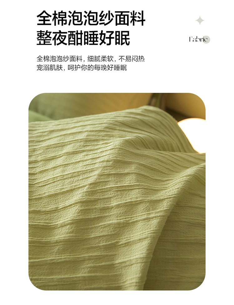 商品名称:雅居纺2023新款系全棉泡泡纱四件套 泡泡纱-牛油果