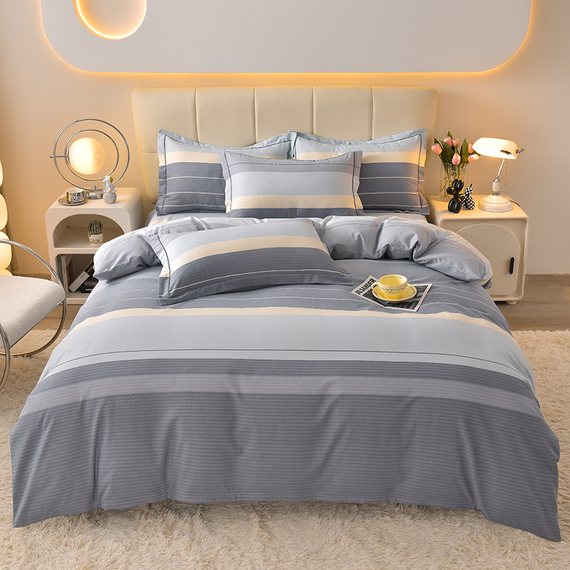 商品名称:幸嘉轩 2025新款全棉喷气加厚磨毛印花小清新四件套 洛迪-灰