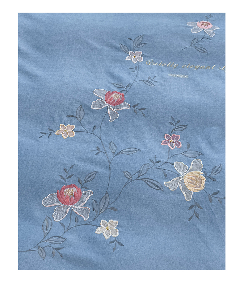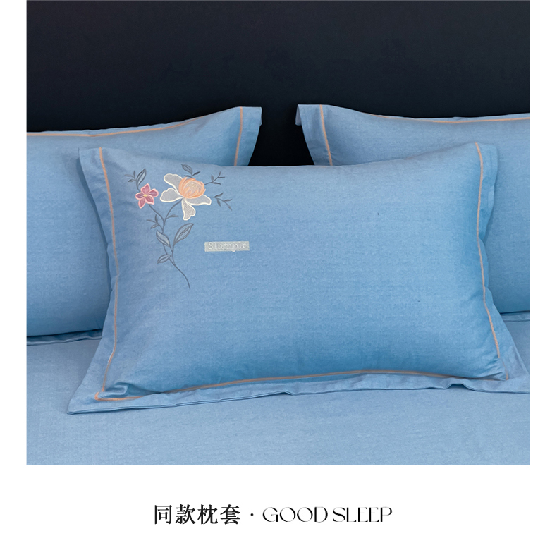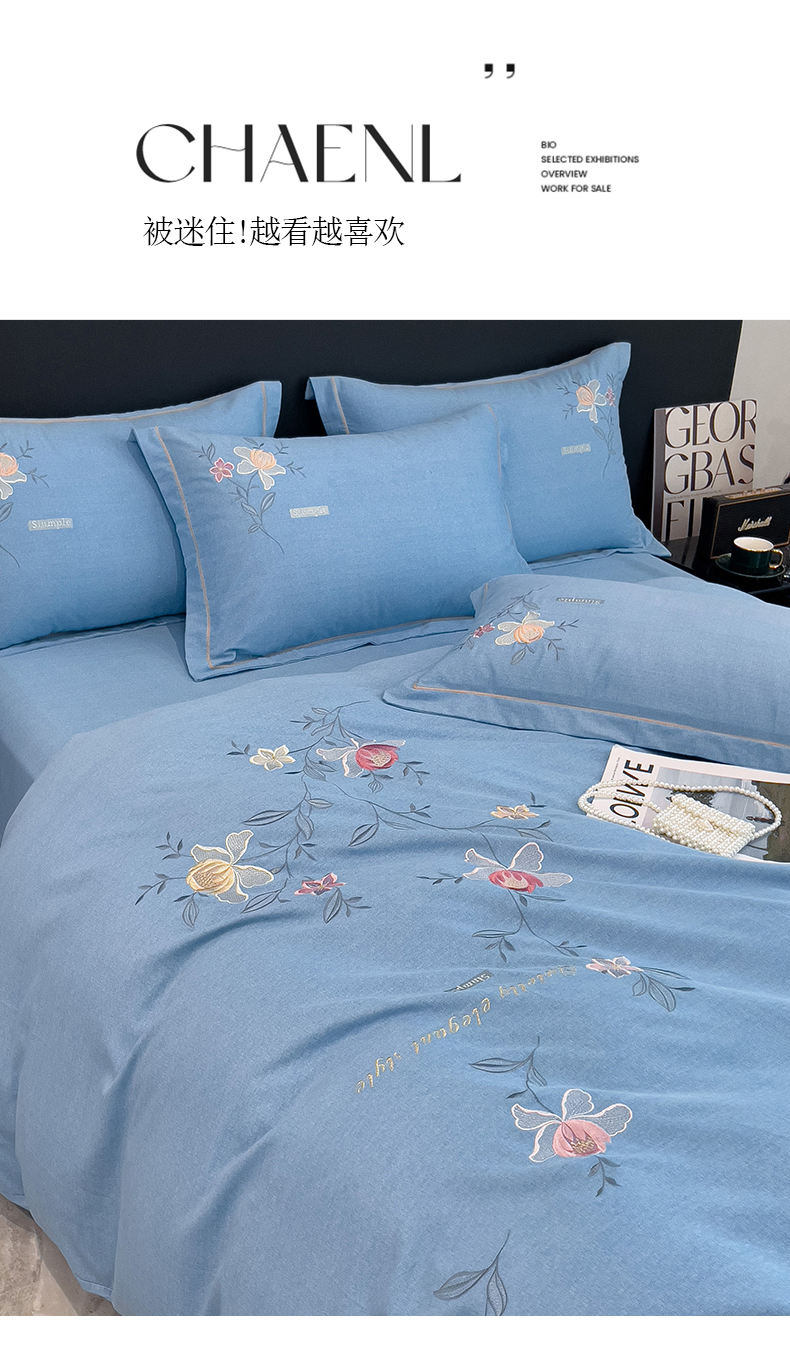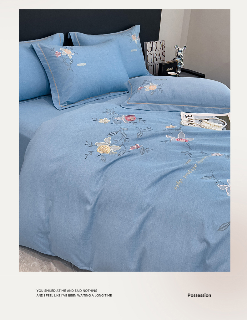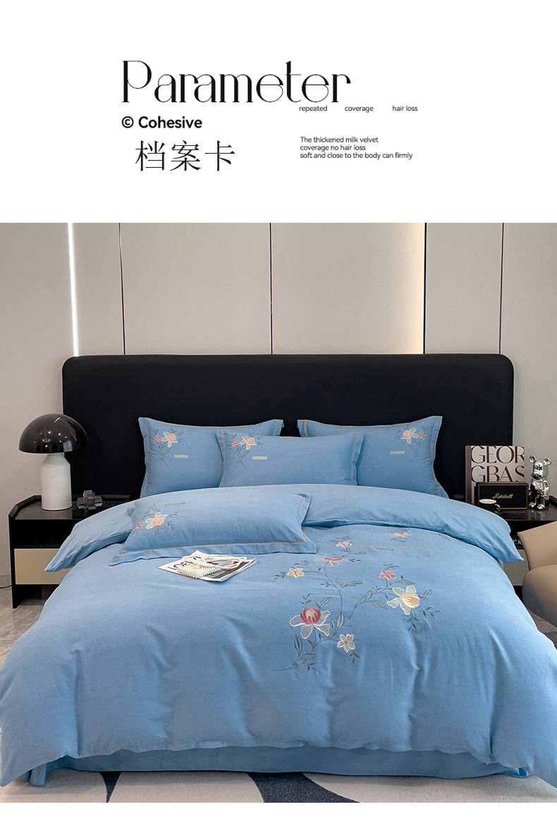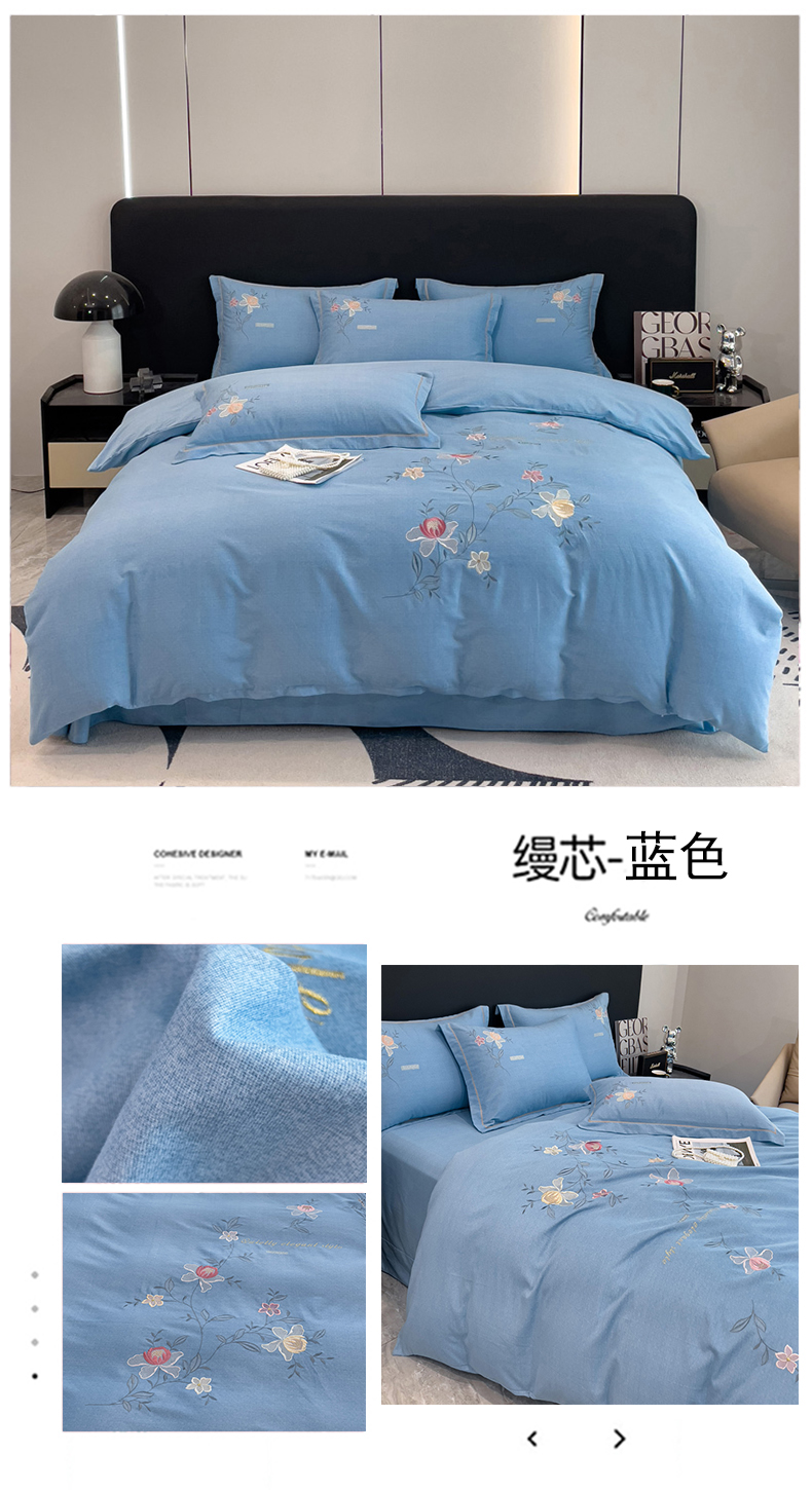 云锦2023新款全棉磨毛绣花四件套系列 缦芯蓝色