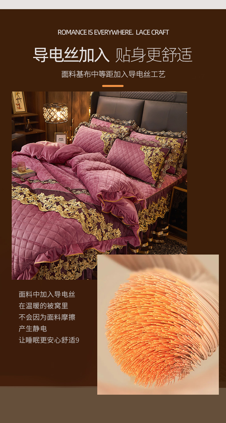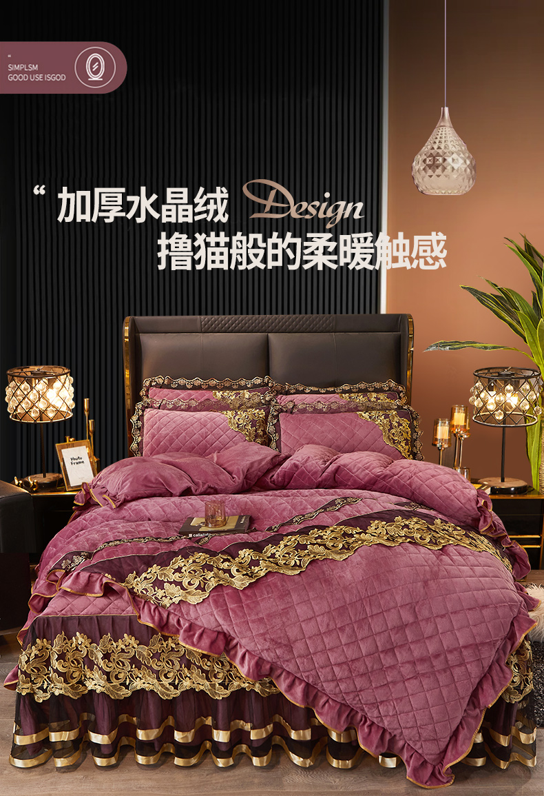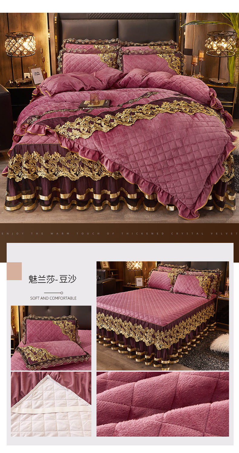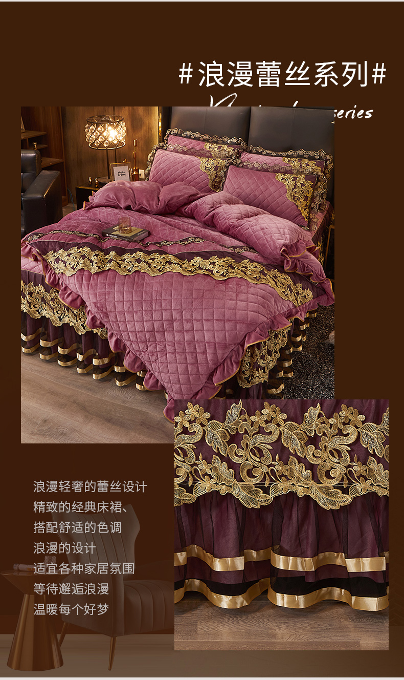 当前位置: 91家纺网 > 商品网购 > 床品套件 > 四件套 > 水晶绒四件套 > 恋尚2023新款魅兰莎水晶绒系列被套夹棉床裙四件套 豆沙