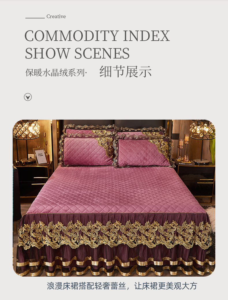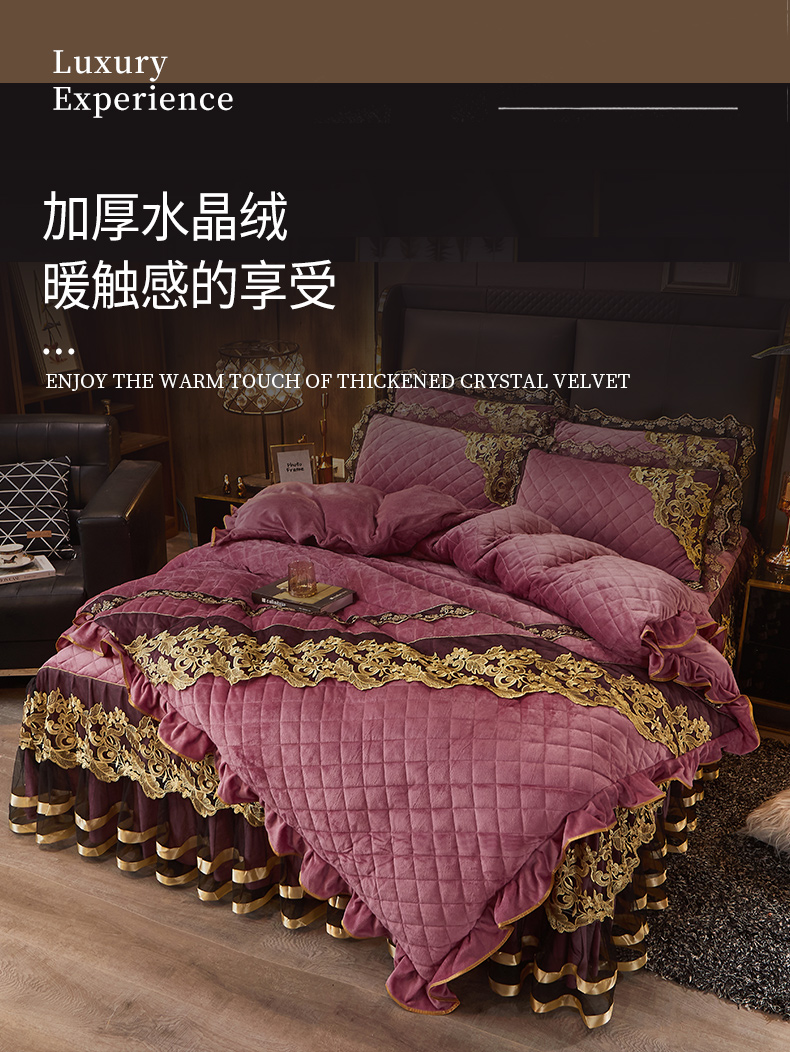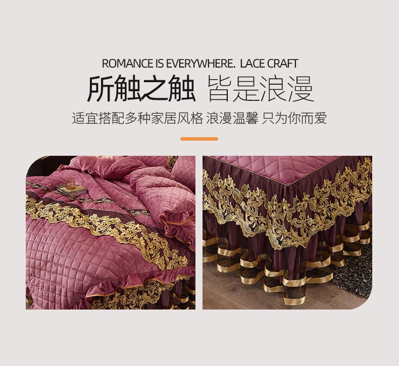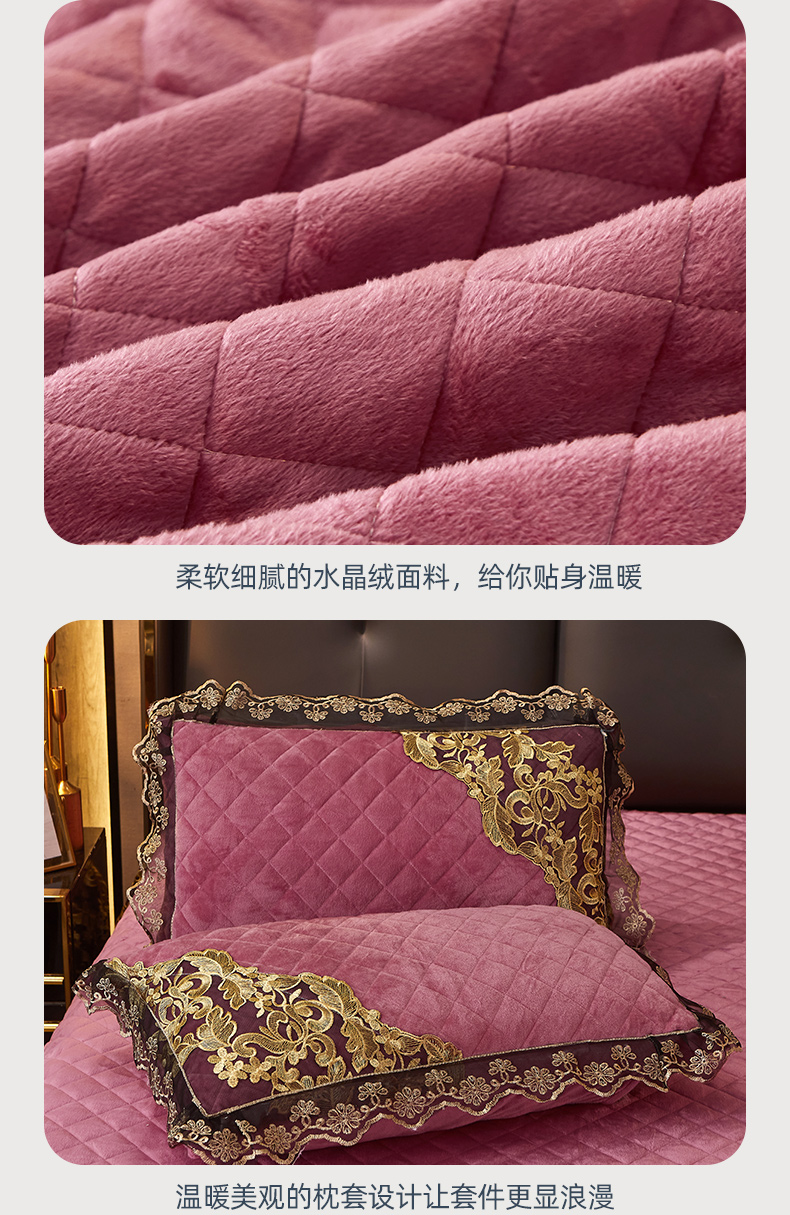 当前位置: 91家纺网 > 商品网购 > 床品套件 > 四件套 > 水晶绒四件套 > 恋尚2023新款魅兰莎水晶绒系列被套夹棉床裙四件套 豆沙