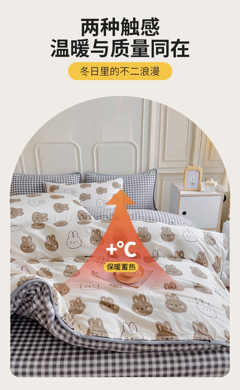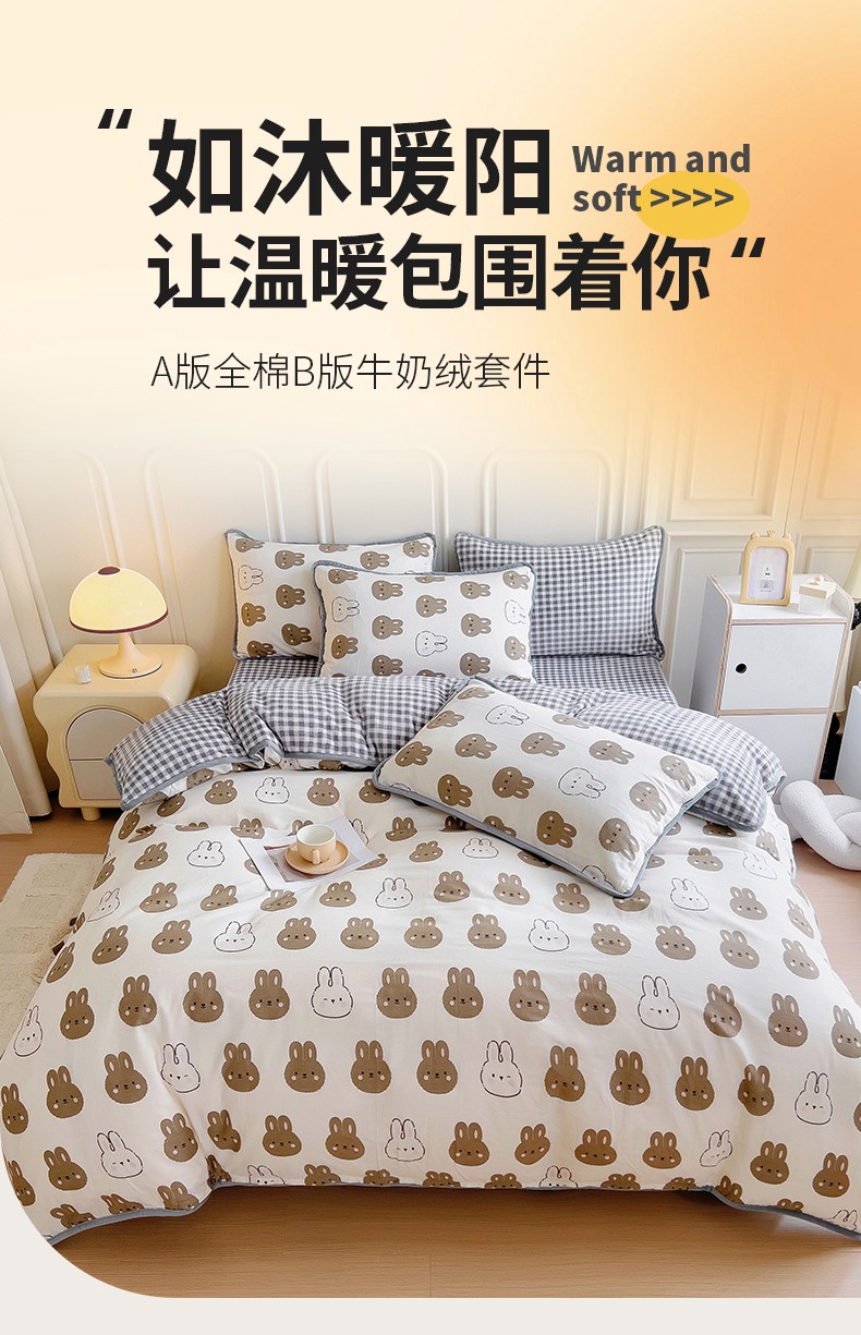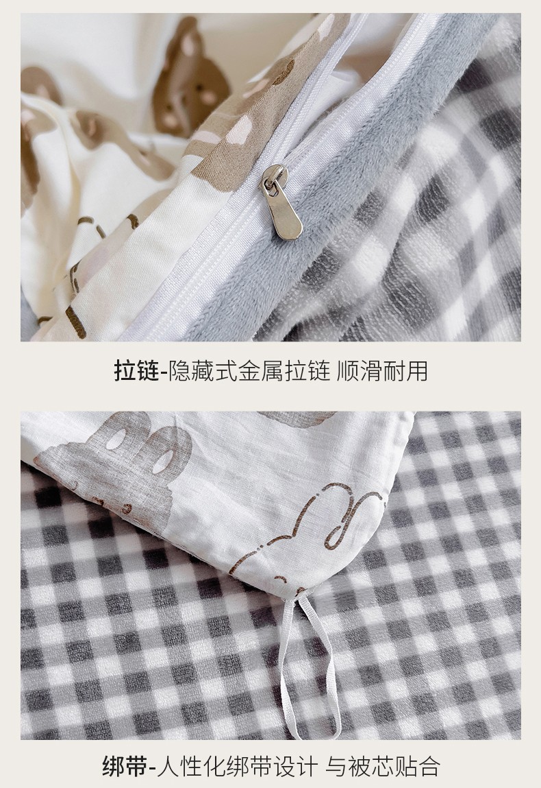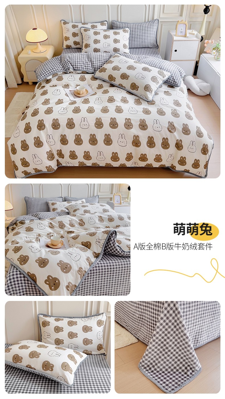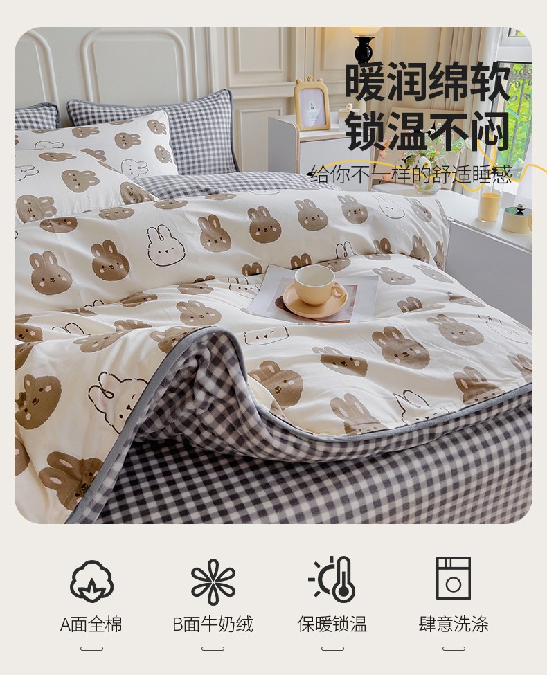 当前位置: 91家纺网 > 商品网购 > 床品套件 > 四件套 > 牛奶绒四件套 > 琪琪阁 2023新款A棉B绒棉加绒牛奶绒四件套单被套 萌萌兔