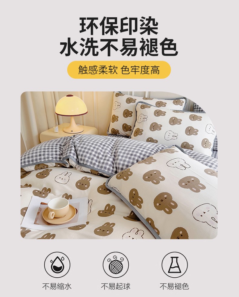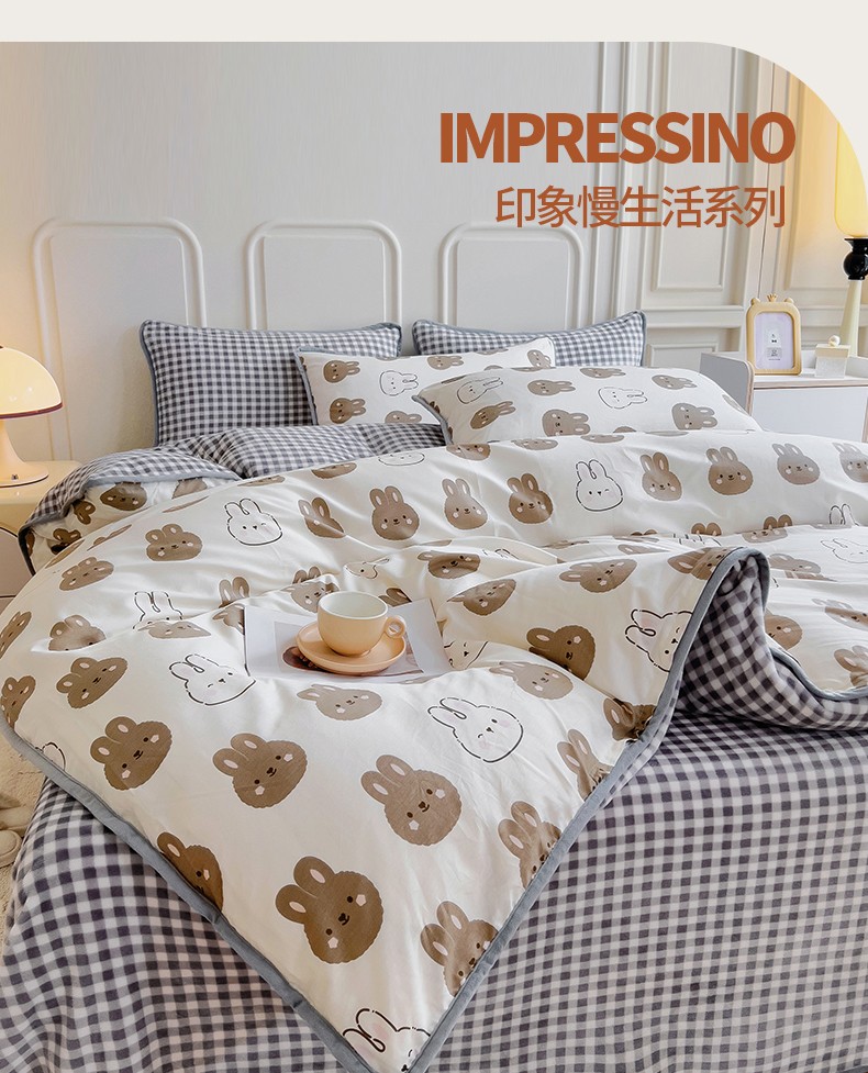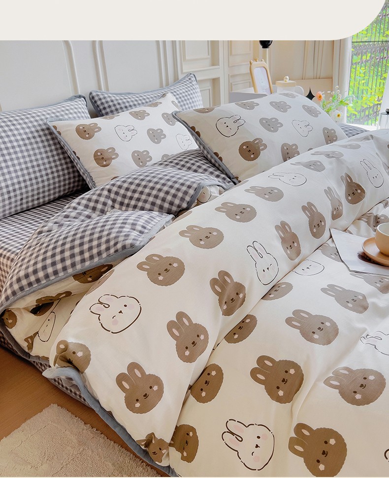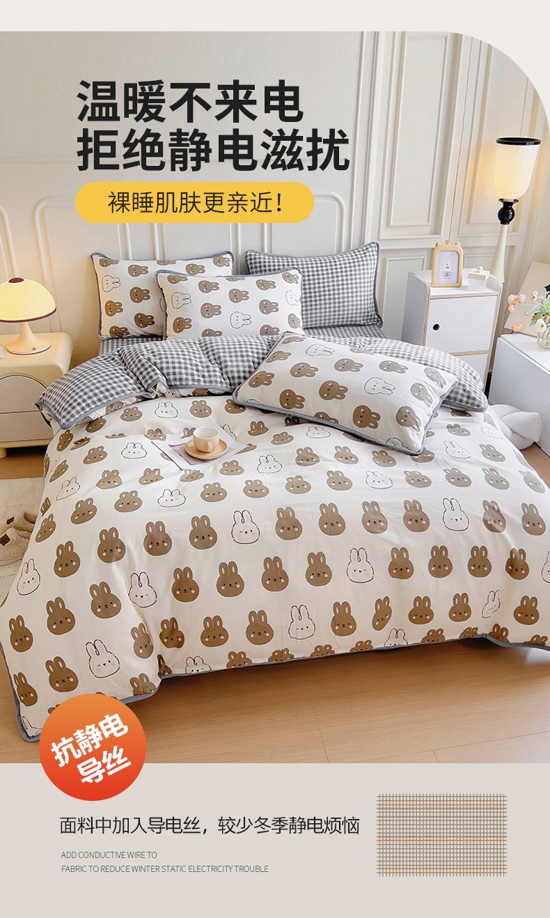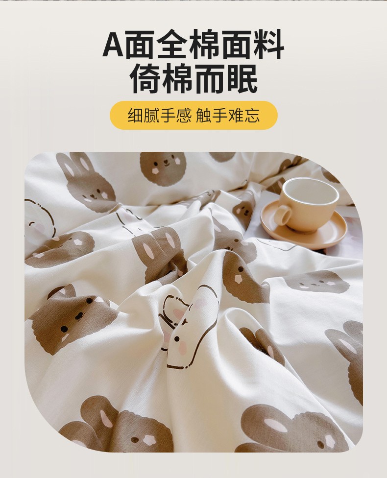 当前位置: 91家纺网 > 商品网购 > 床品套件 > 四件套 > 牛奶绒四件套 > 琪琪阁 2023新款A棉B绒棉加绒牛奶绒四件套单被套 萌萌兔