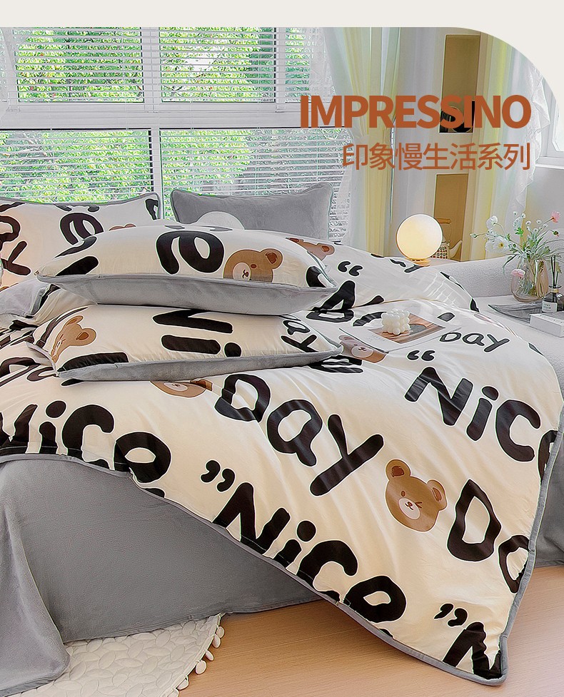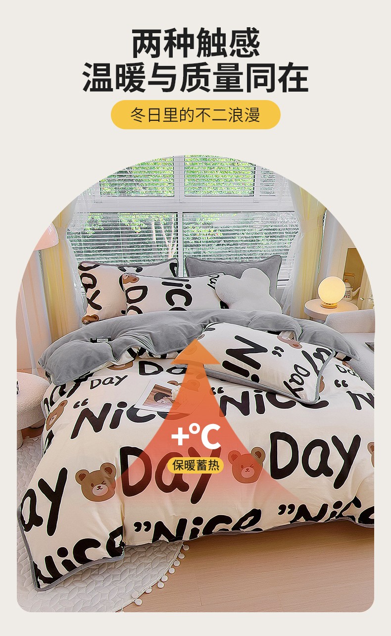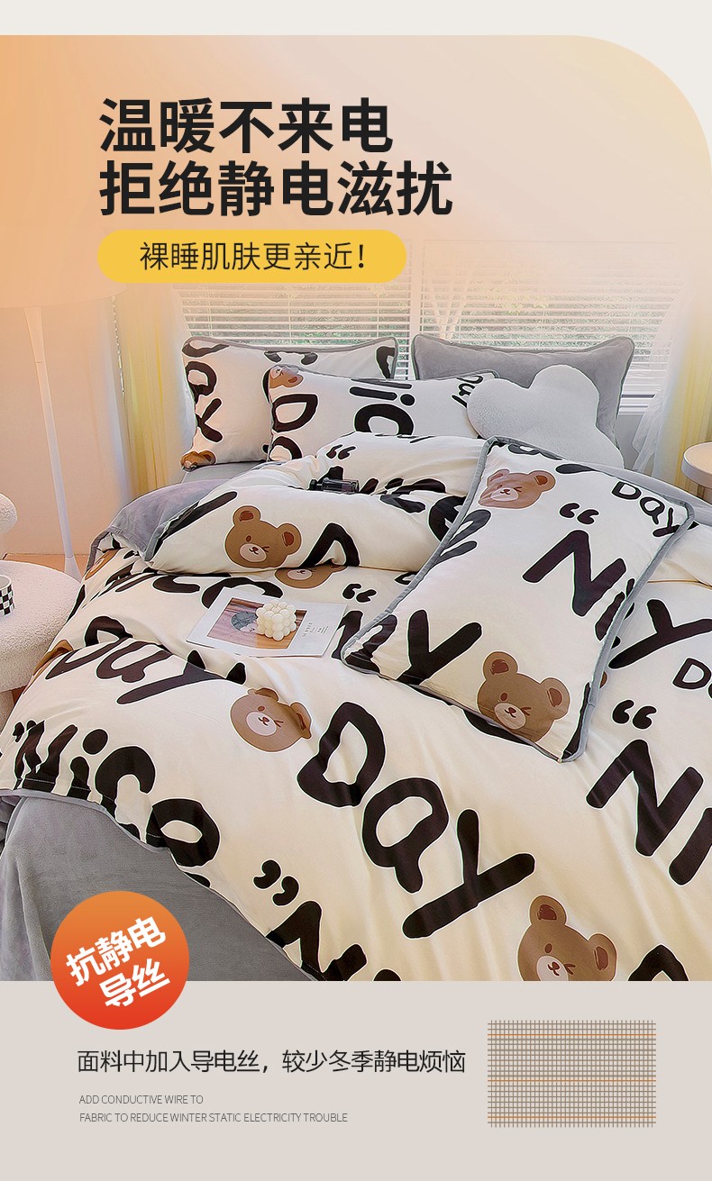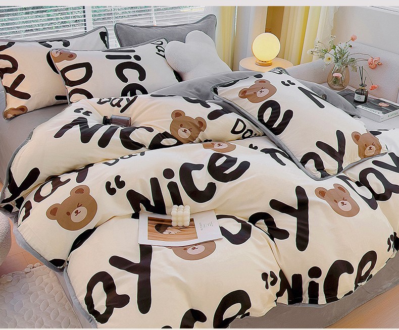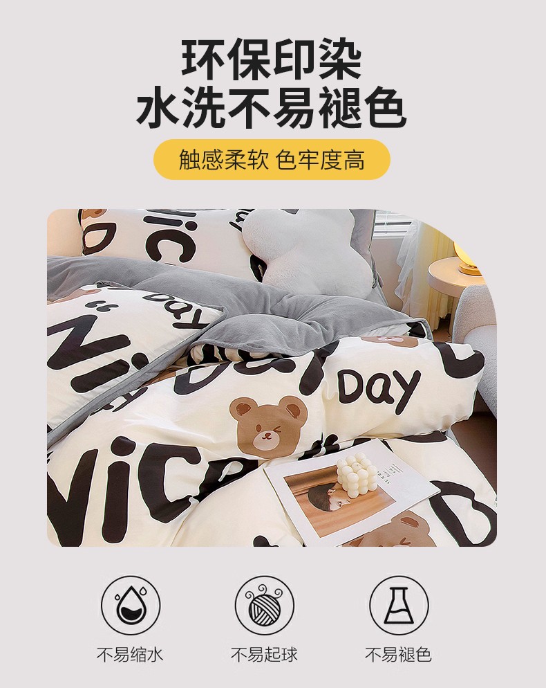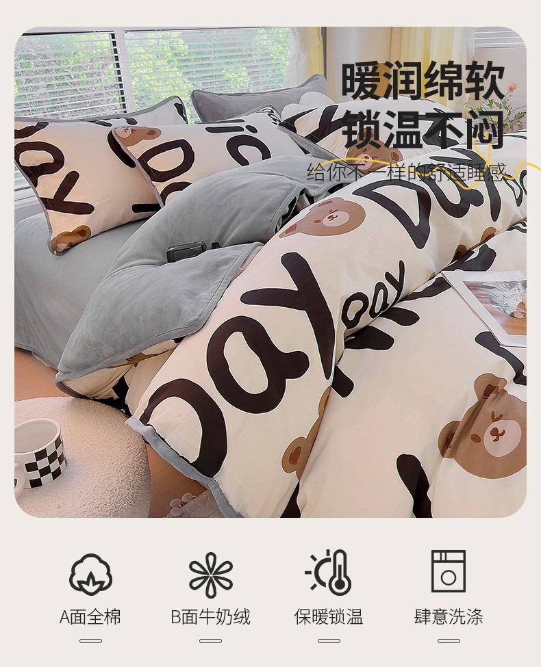 当前位置: 91家纺网 > 商品网购 > 床品套件 > 四件套 > 牛奶绒四件套 > 琪琪阁 2023新款A棉B绒棉加绒牛奶绒四件套单被套 字母熊