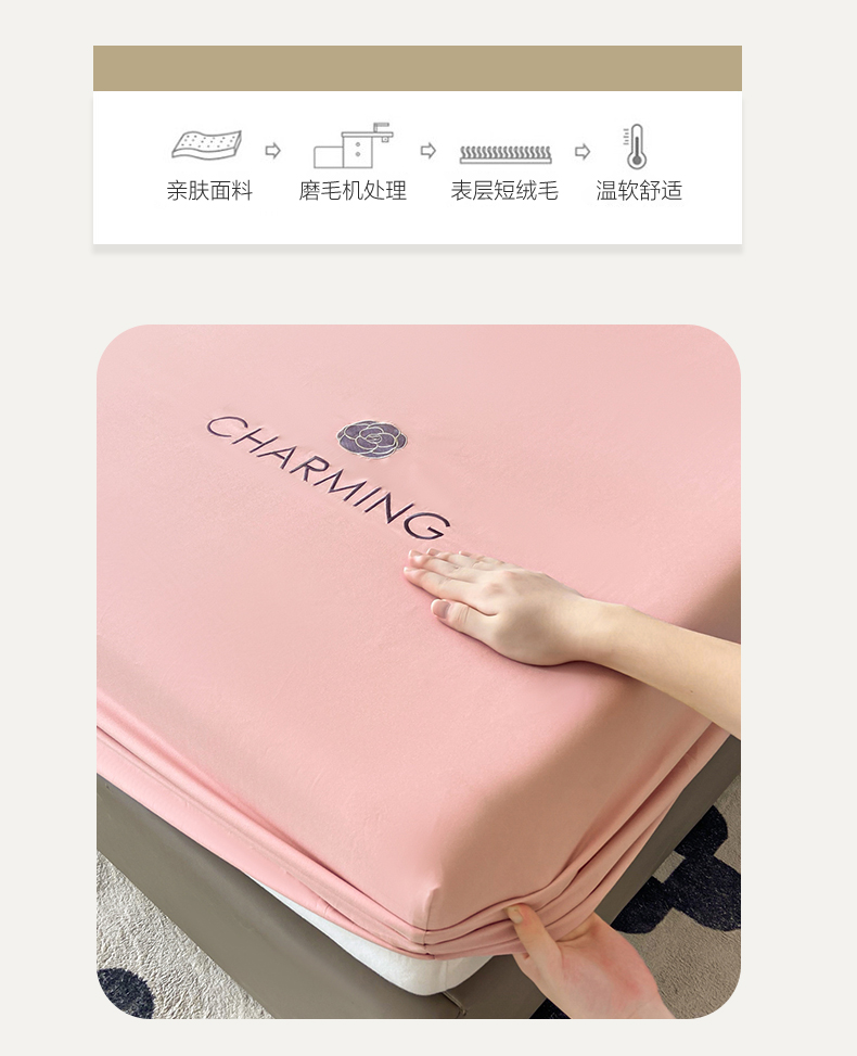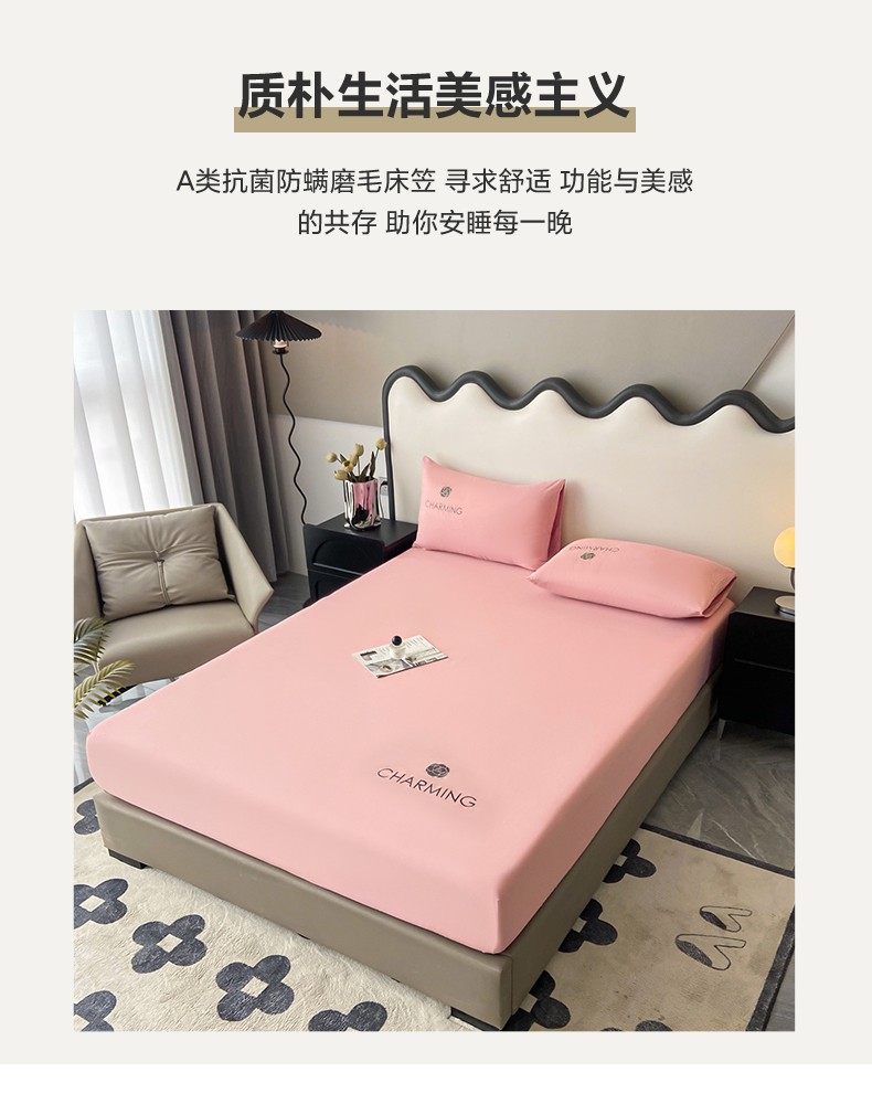 当前位置: 91家纺网 > 商品网购 > 床品套件 > 三件套 > 古吉梦 2024新款A类抗菌防螨磨毛床笠 磨毛床笠朵拉-藕粉