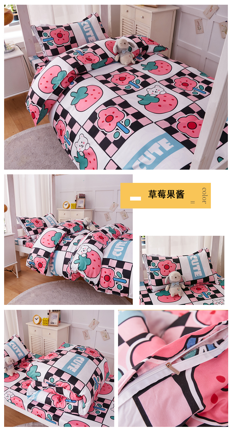 商品名称:2023新款亲肤棉美棉芦荟棉三件套美棉(8月)学生宿舍床 草莓果酱