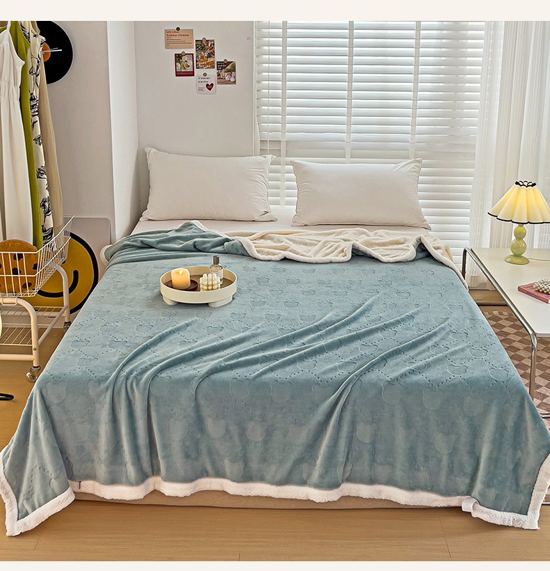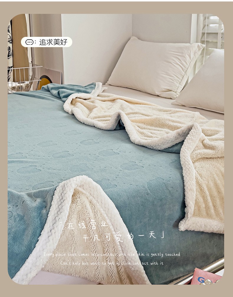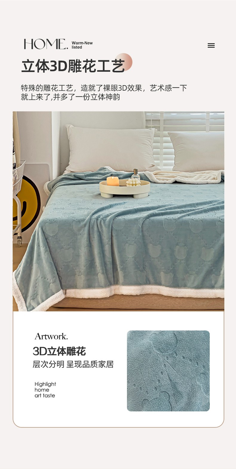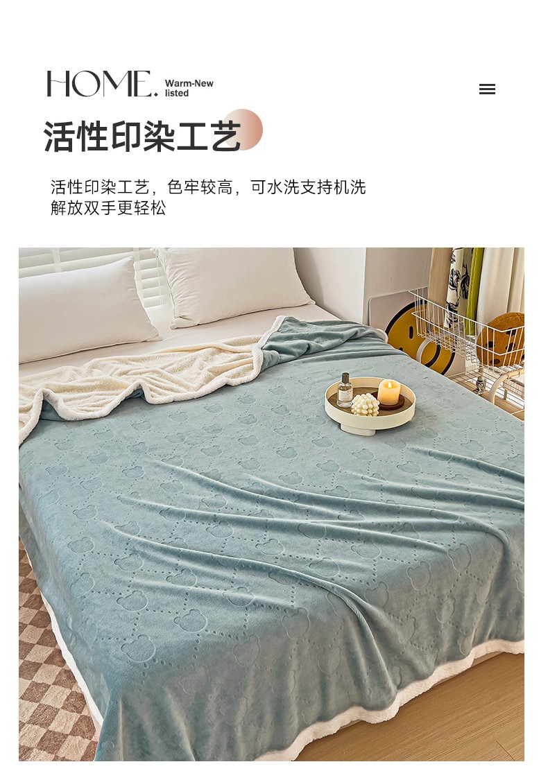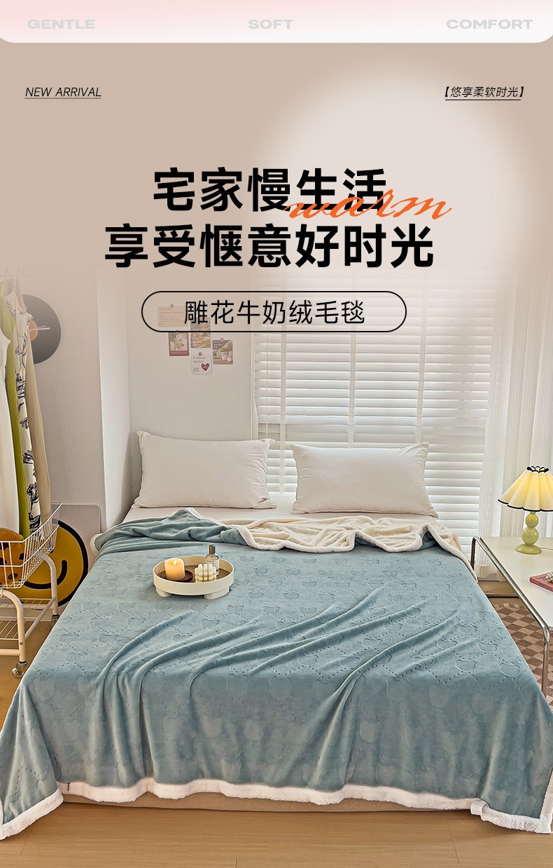 法澳 2023新款220克牛奶绒雕花烂花毛毯休闲毯 甘比熊-浅灰兰