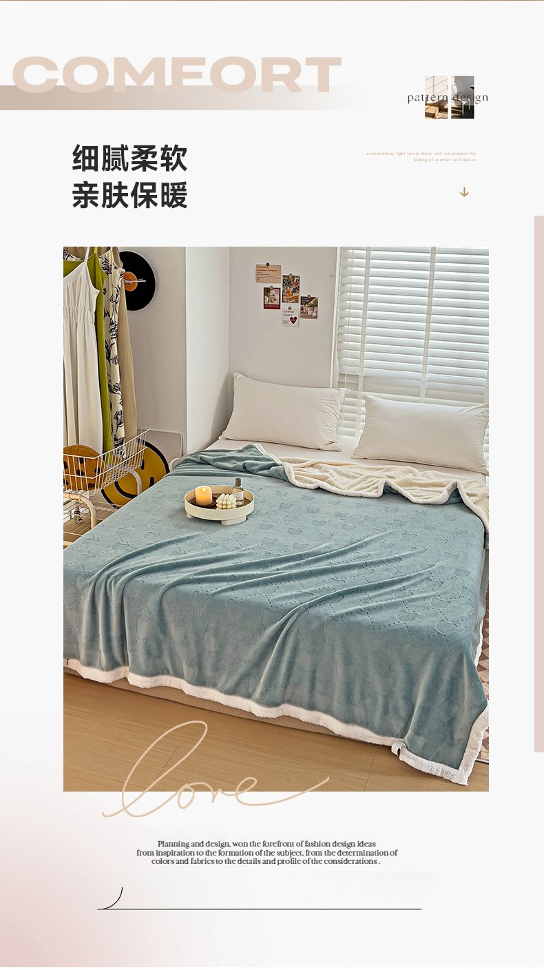 商品名称:法澳 2023新款220克牛奶绒雕花烂花毛毯休闲毯 甘比熊-浅灰兰