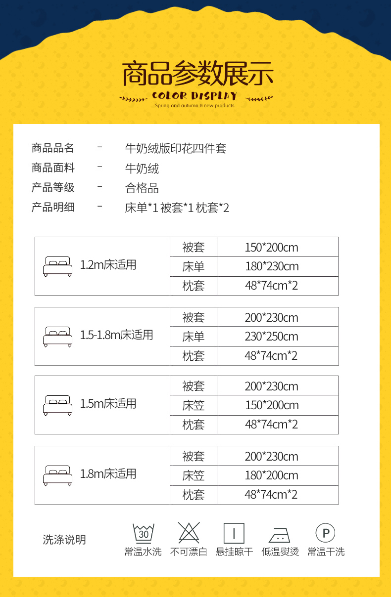 1.5*2.0m被套+1.5m床笠+2个枕套 | ¥90.00 |