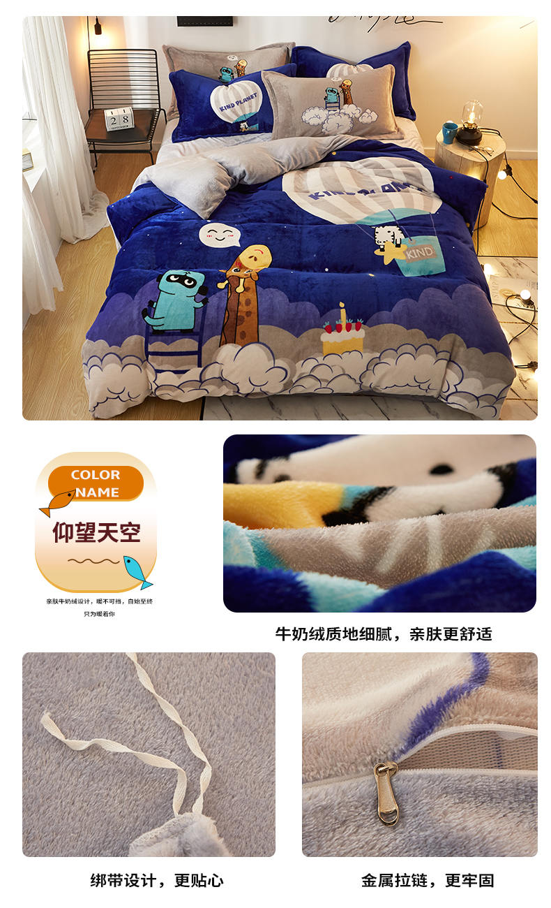 当前位置: 91家纺网 > 商品网购 > 床品套件 > 四件套 > 牛奶绒四件套 > KT猫 2024卡通法莱绒牛奶绒四件套仰望天空