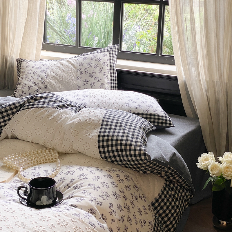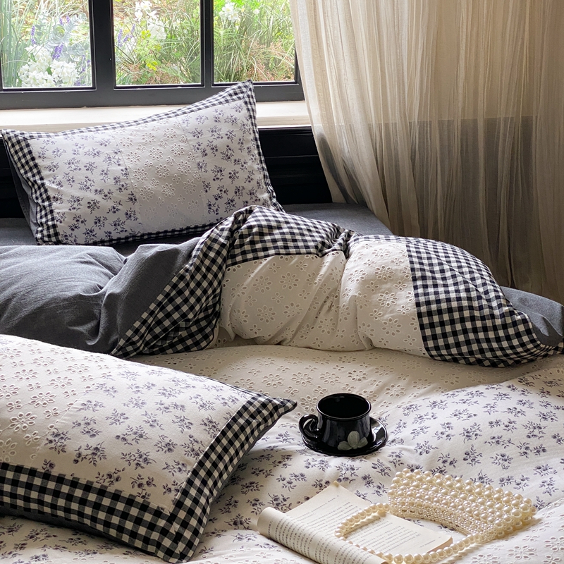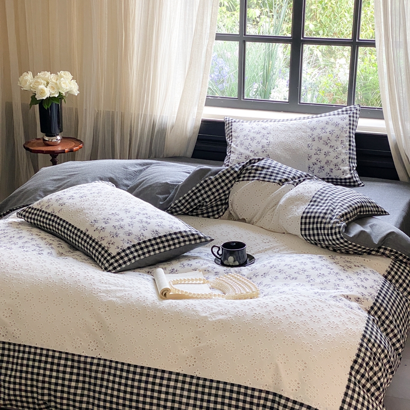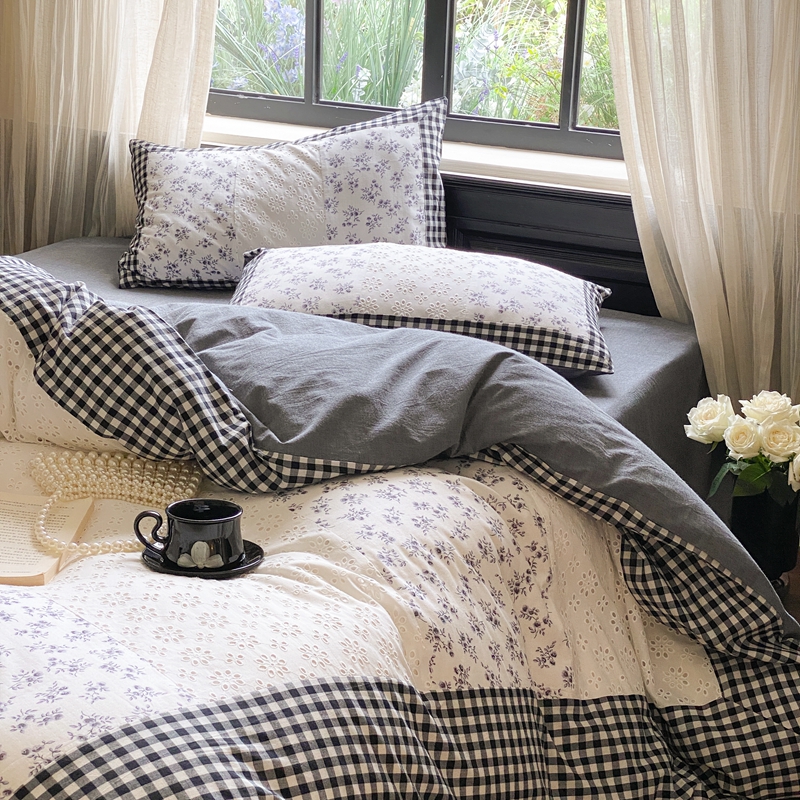 商品名称:旷野 2023新款水洗棉-微甜小柏丽四件套 棚拍 经典黑