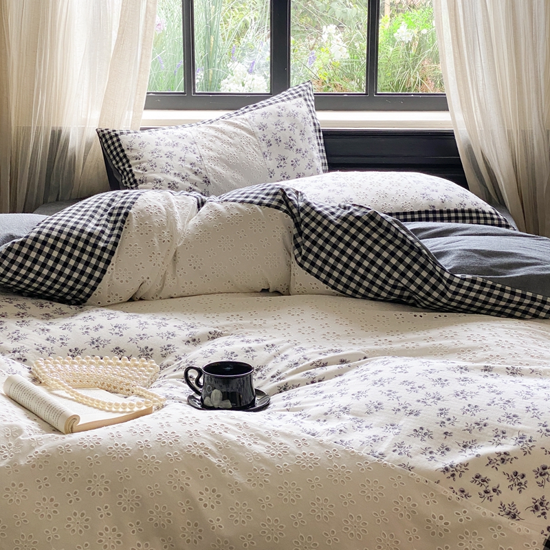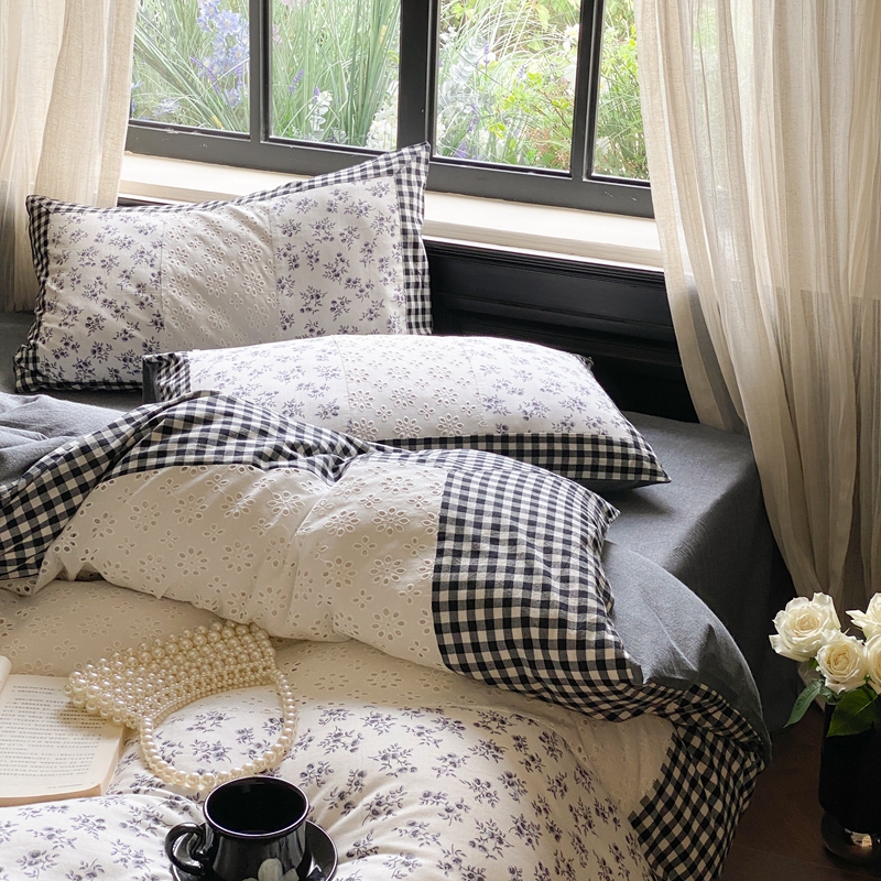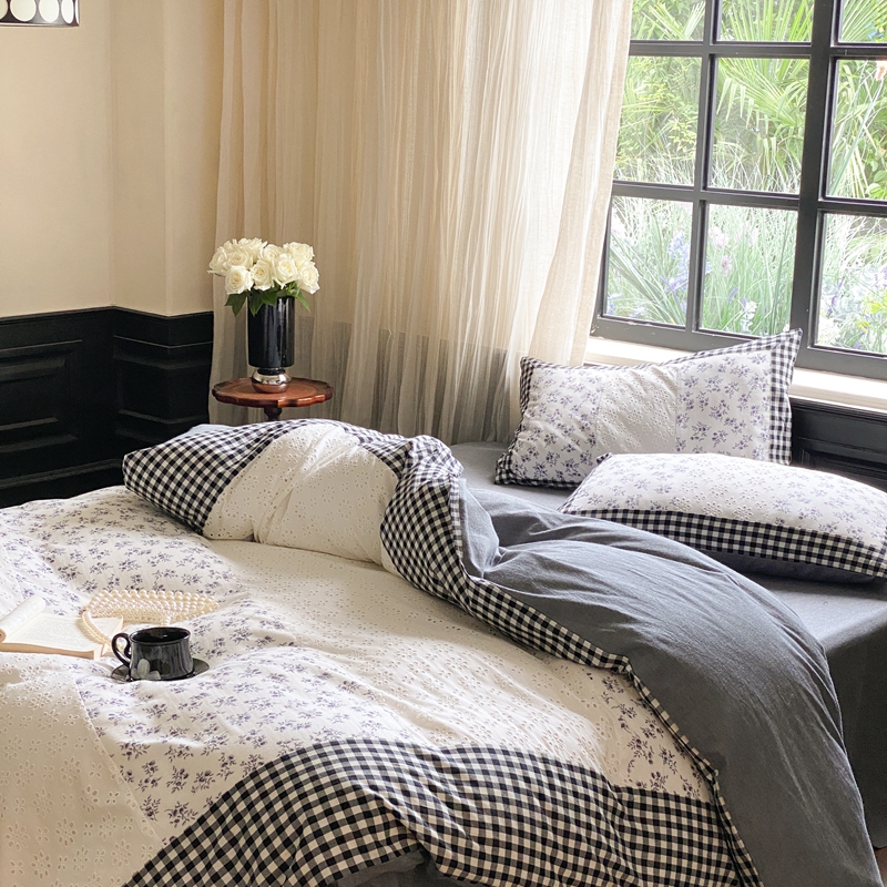旷野 2023新款水洗棉-微甜小柏丽四件套 棚拍 经典黑