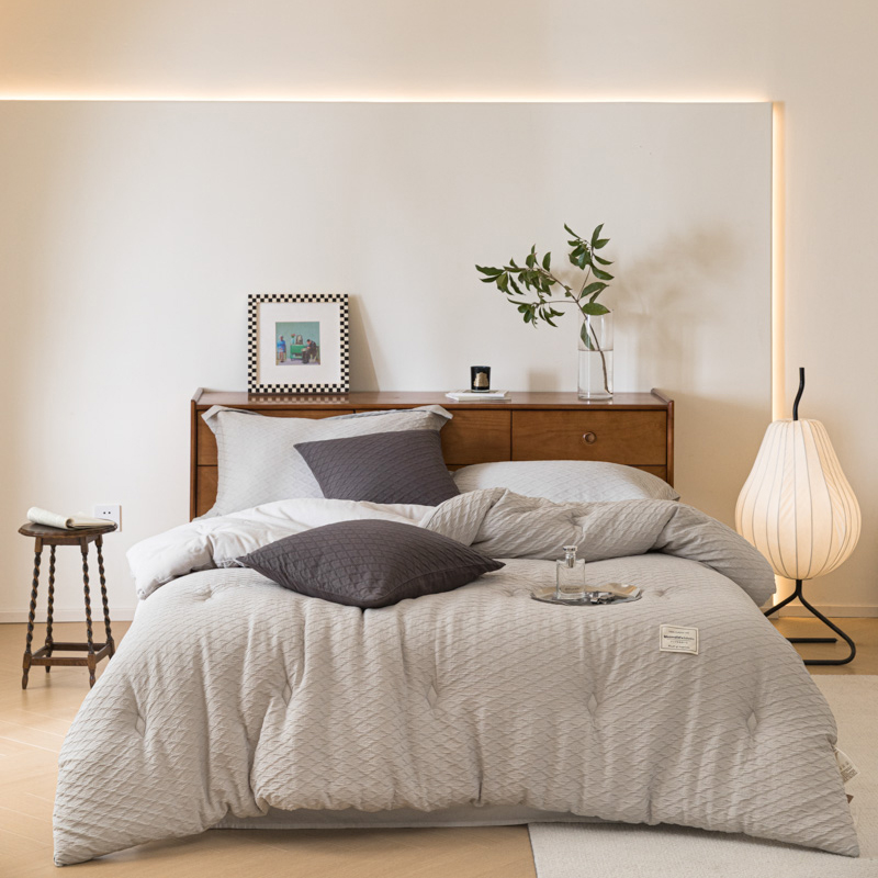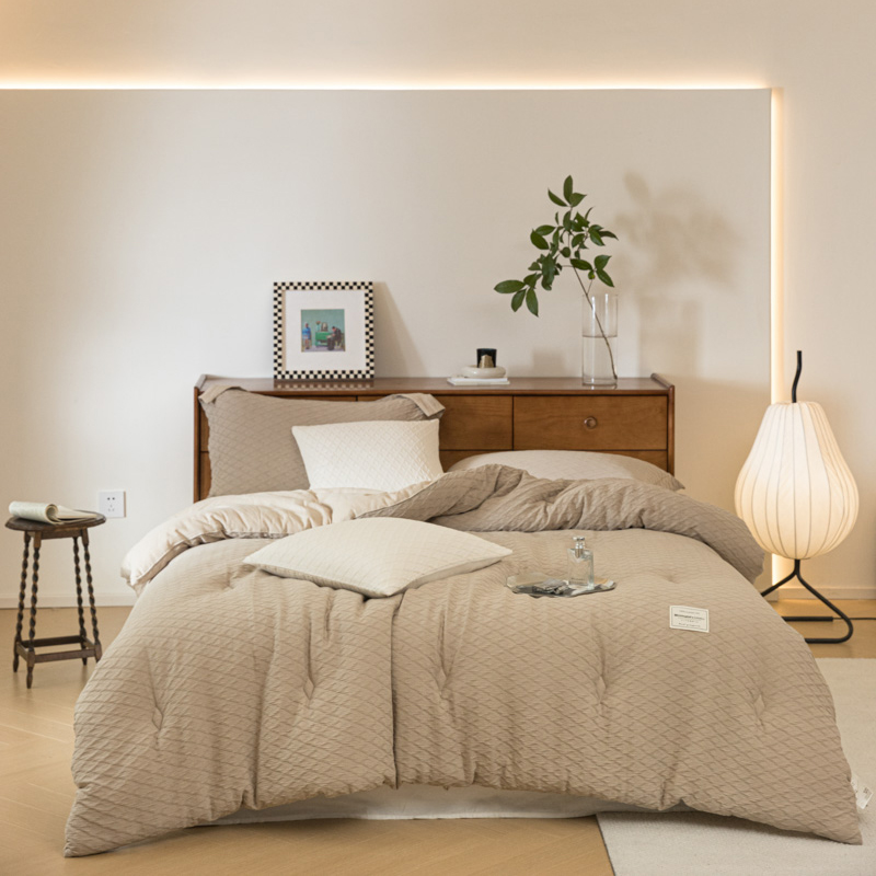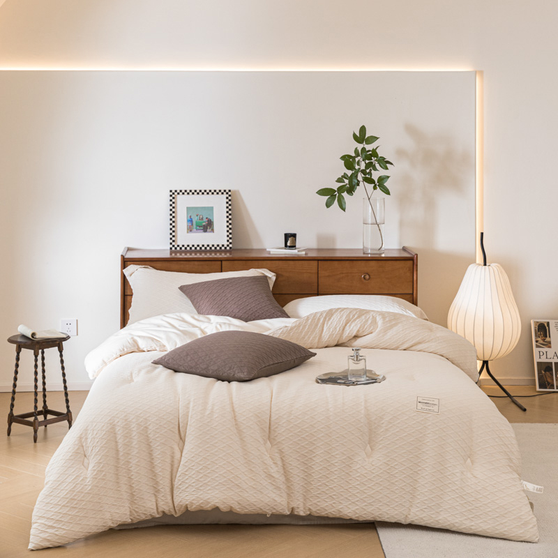 (总)上喜 2025新款六代砂洗床盖三件套+多功能夏被,高级灰,奶油白,奶油米,樱花粉,芋泥紫
