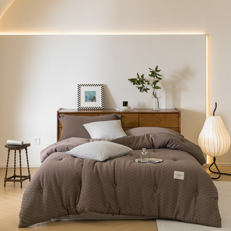 (总)上喜 2025新款简约棉麻床盖夏被夏凉被空调被四件套,粉色,灰色,咖色,麻本色