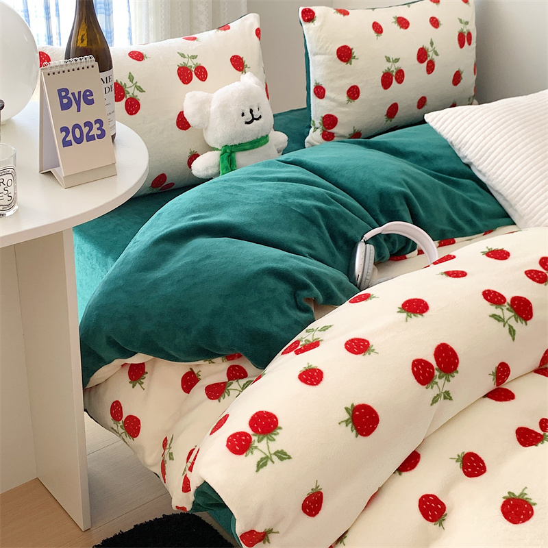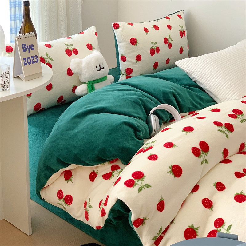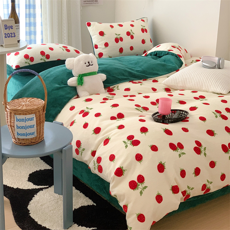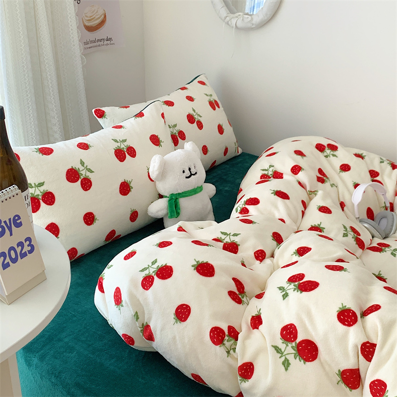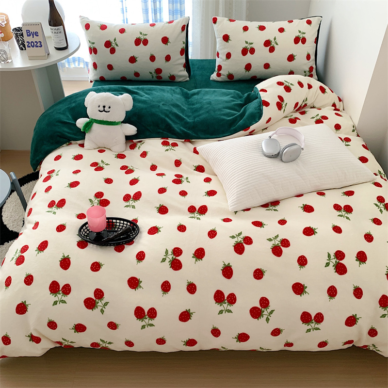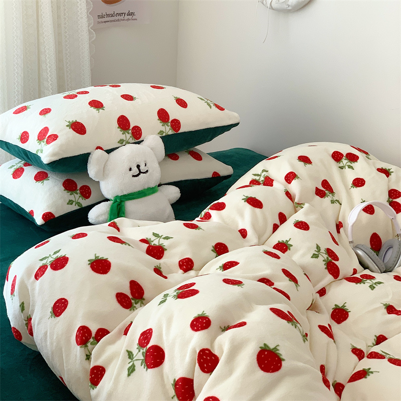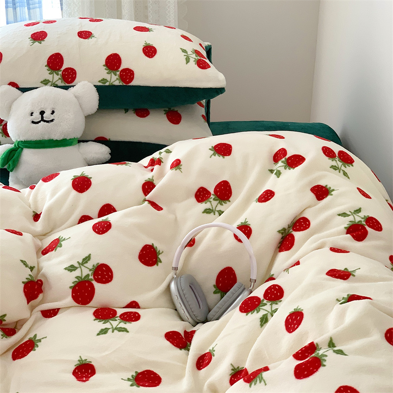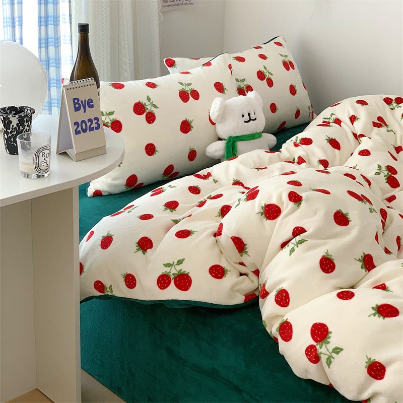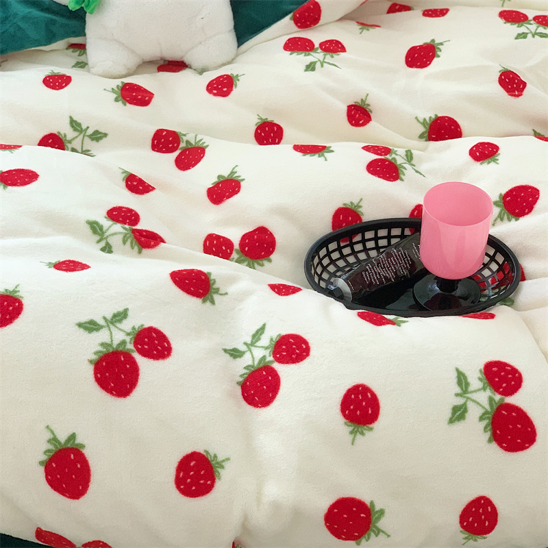 美乐迪家纺 2023秋冬新款保暖牛奶绒四件套 迷你草莓