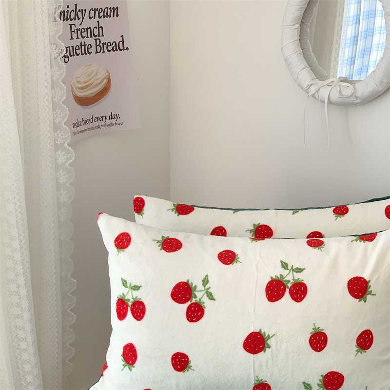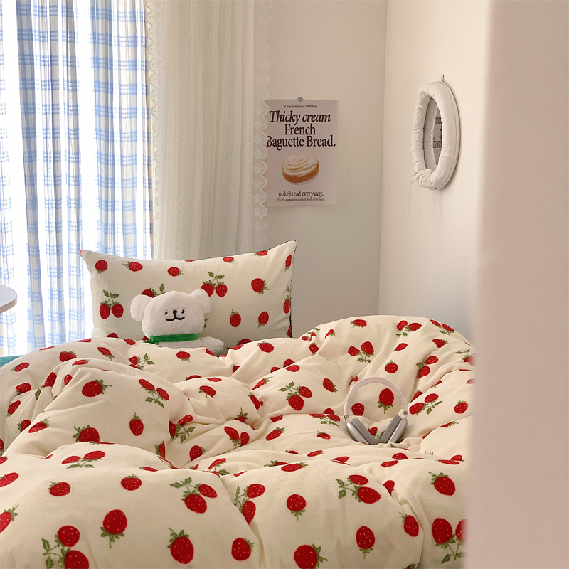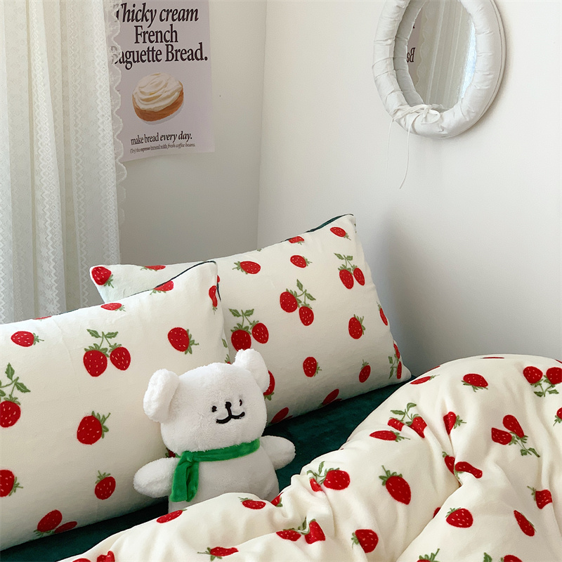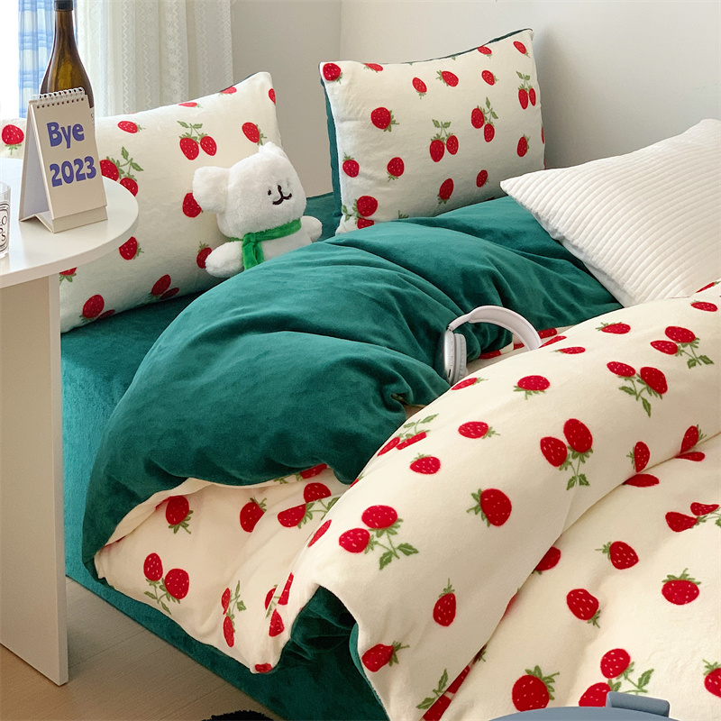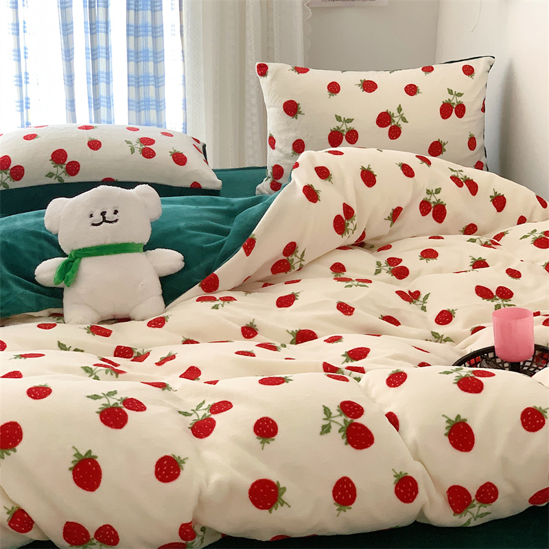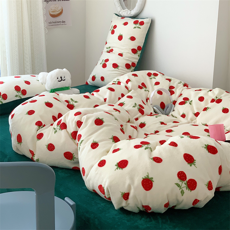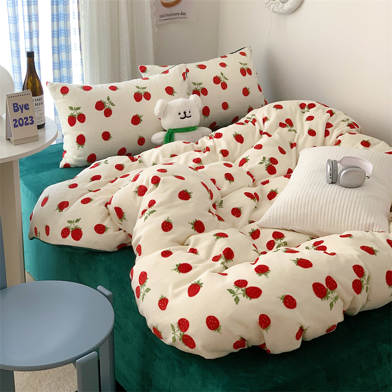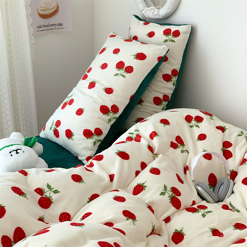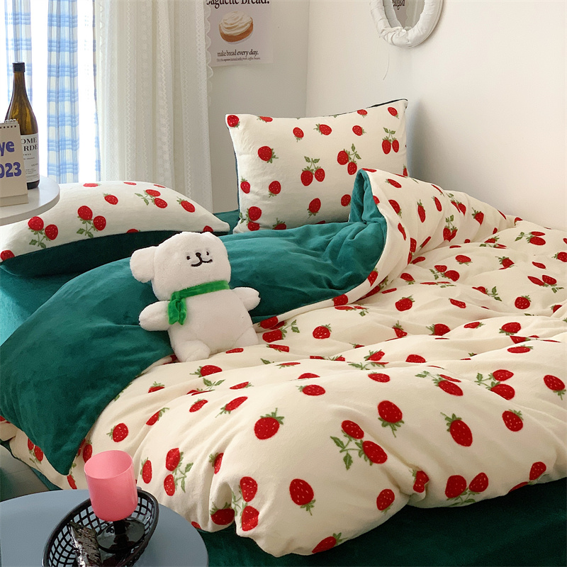 美乐迪家纺 2023秋冬新款保暖牛奶绒四件套 迷你草莓
