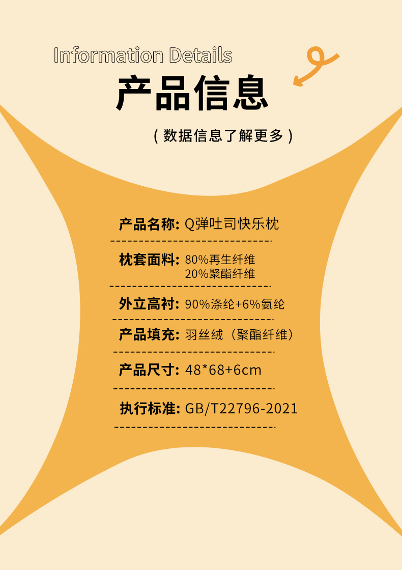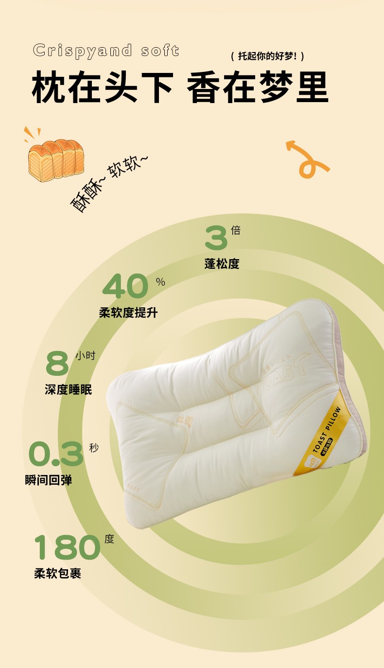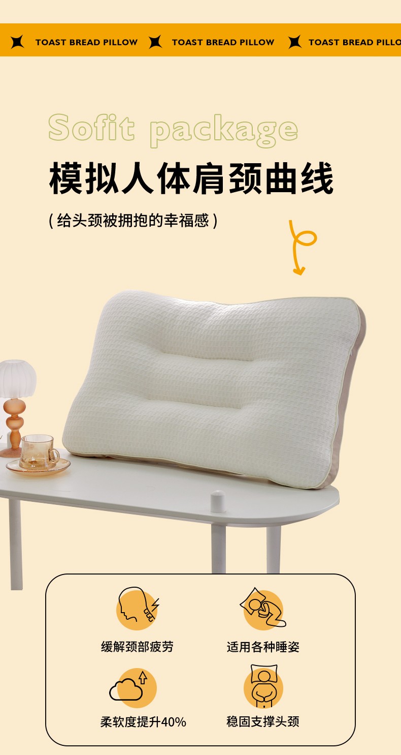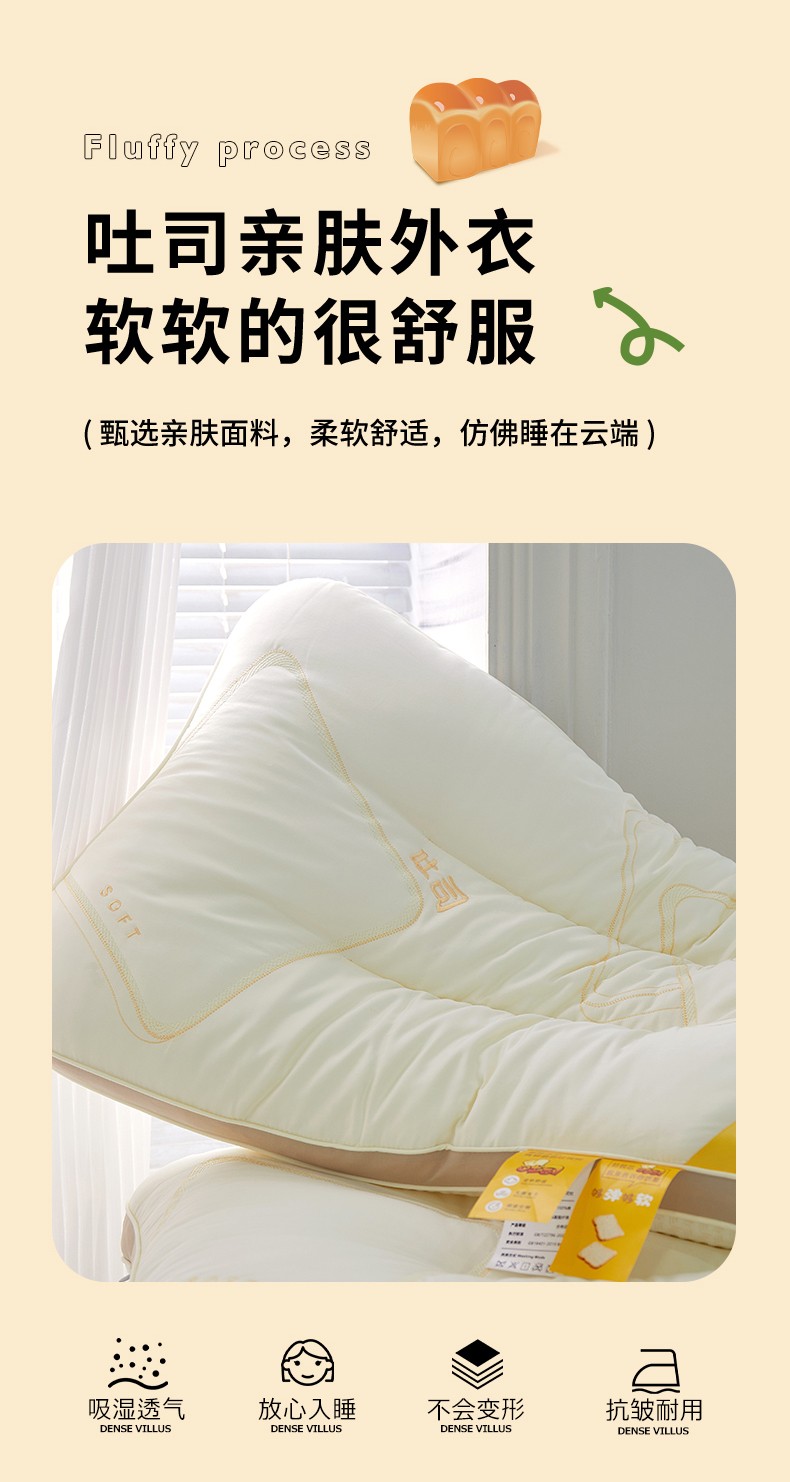 商品名称:2023新款 元气吐司枕 学生护颈枕头 够弹够软单人枕芯
