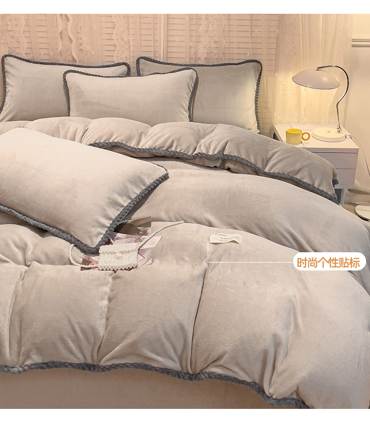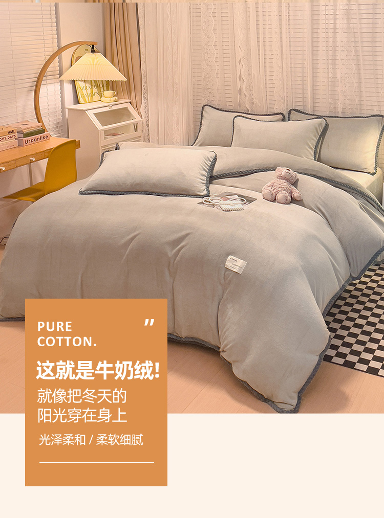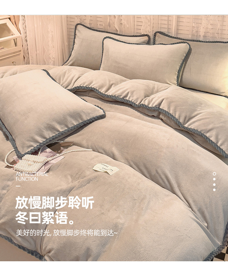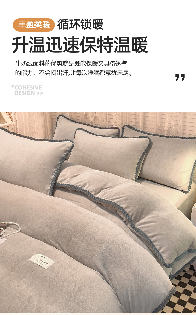 商品名称:欧冠 2023新款加厚牛奶绒纯色优雅四件套 优雅-浅驼