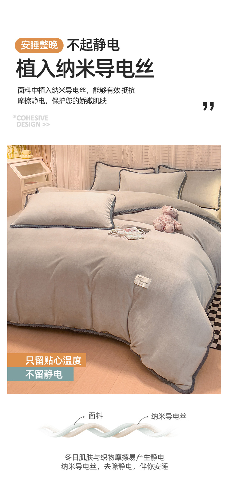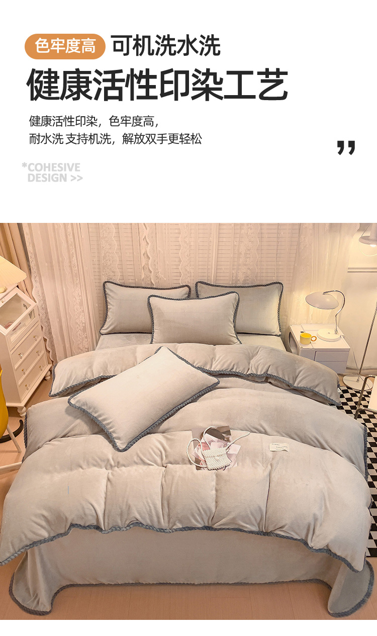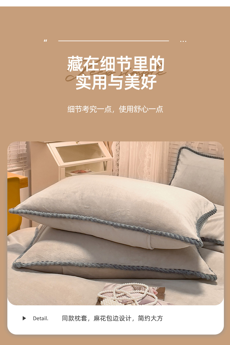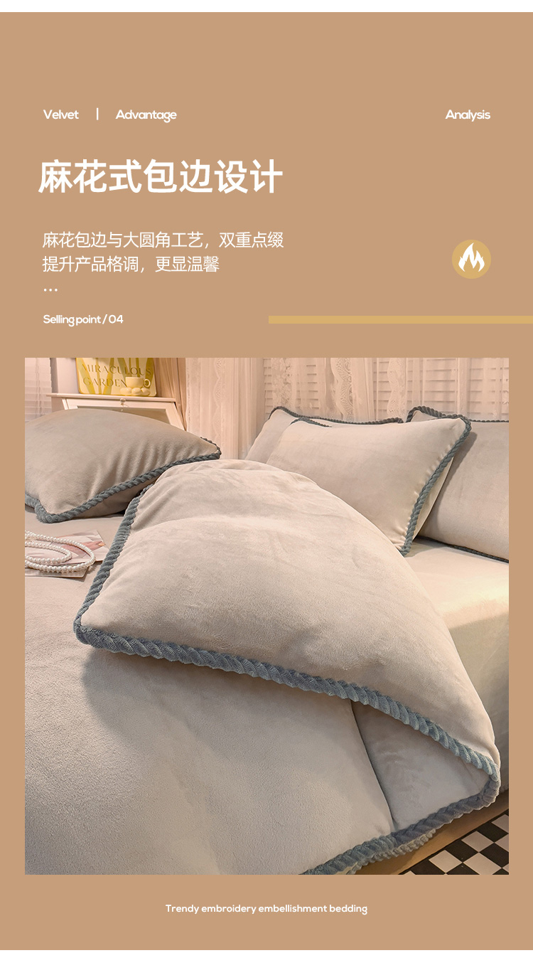 商品名称:欧冠 2023新款加厚牛奶绒纯色优雅四件套 优雅-浅驼