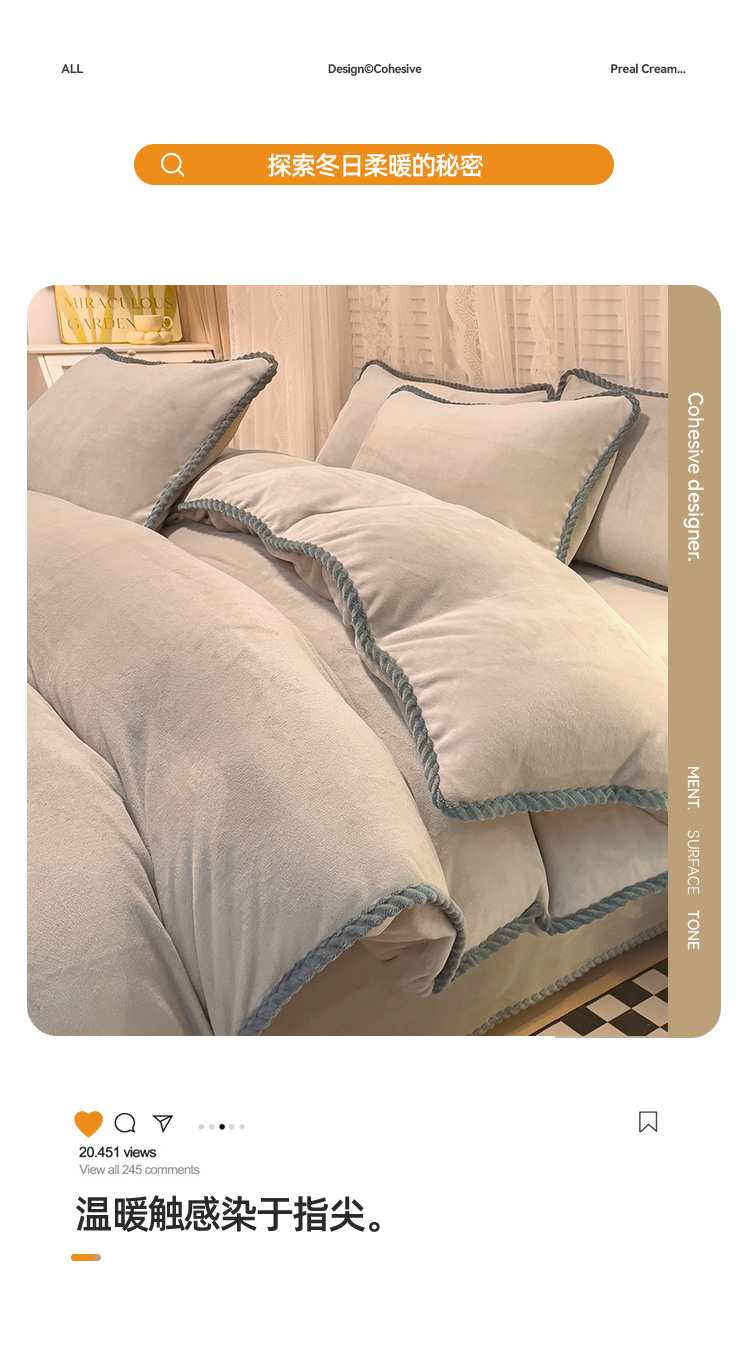 欧冠 2023新款加厚牛奶绒纯色优雅四件套 优雅-浅驼