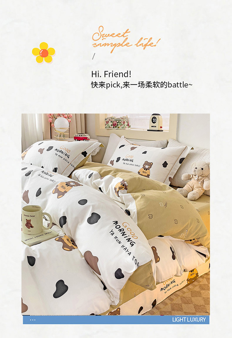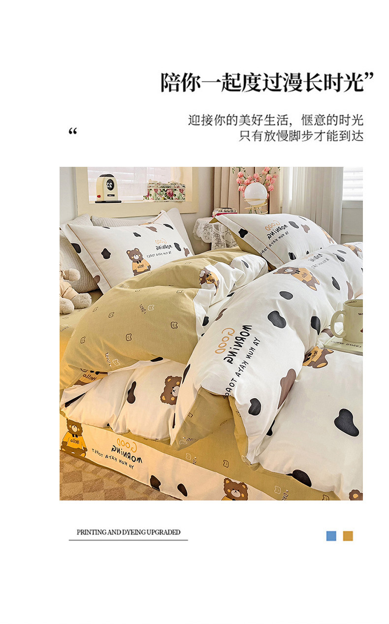 乐童家纺 2024新款网红直播爆款吊边+一字绣工艺款四件套(十二) 斑点熊