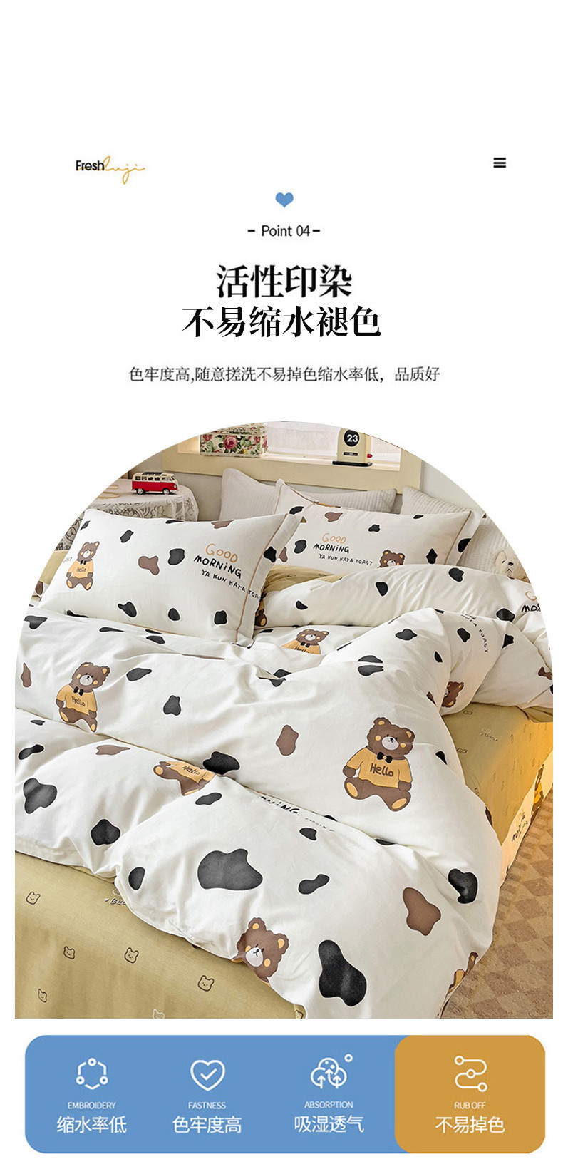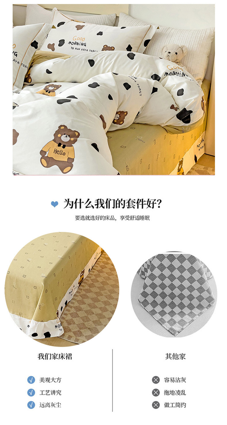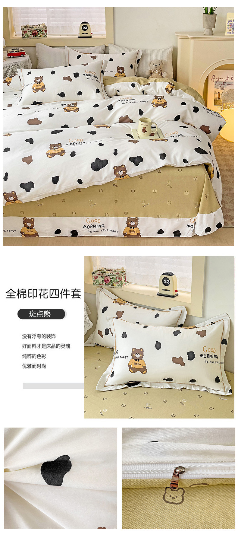 商品名称:乐童家纺 2024新款网红直播爆款吊边+一字绣工艺款四件套(十二) 斑点熊