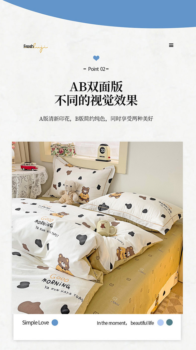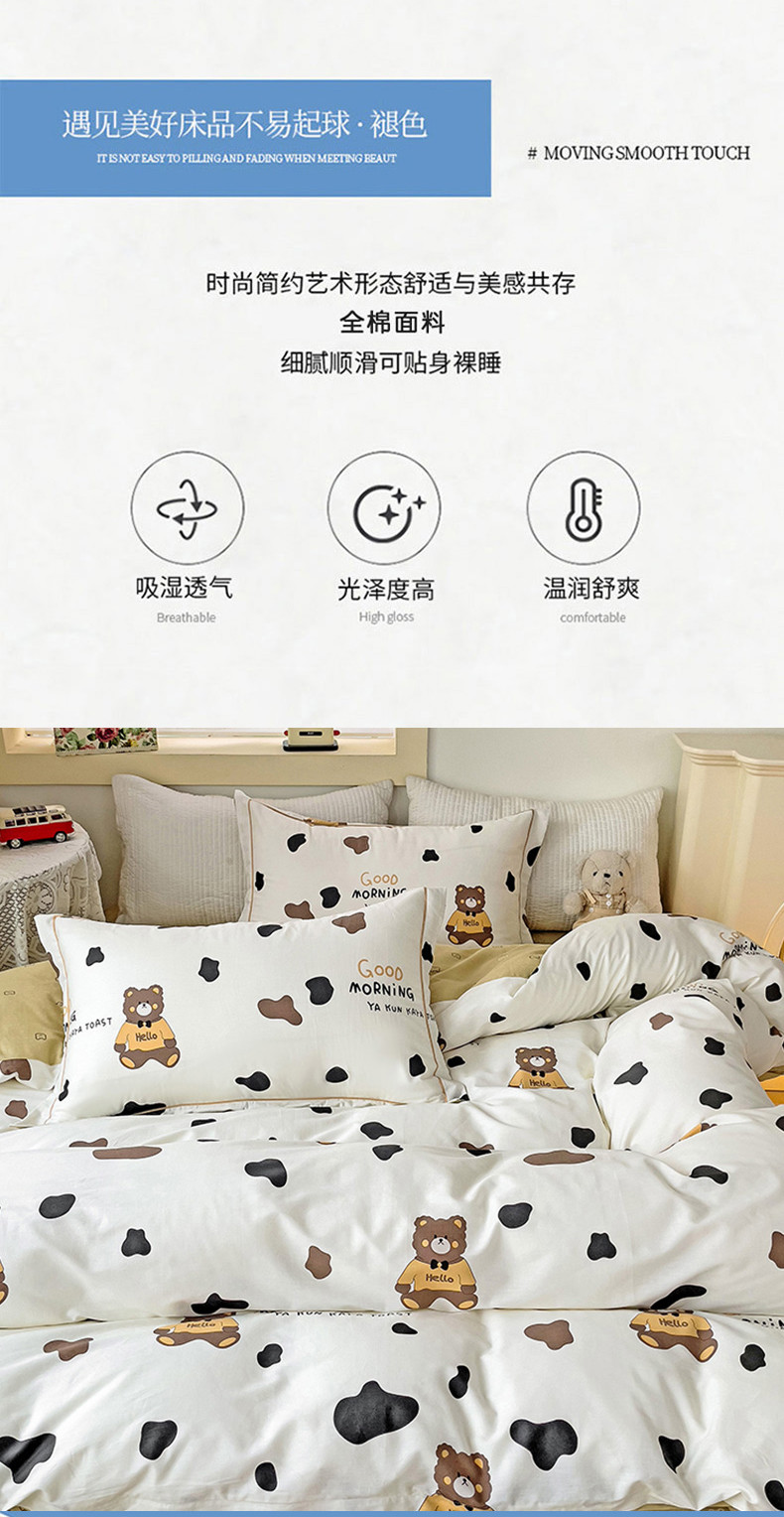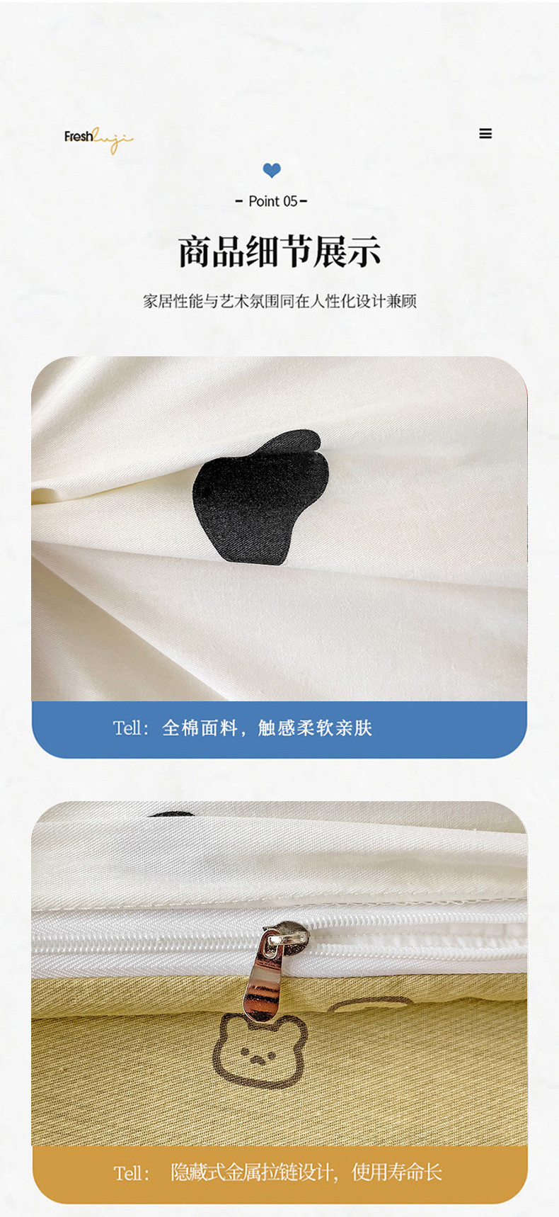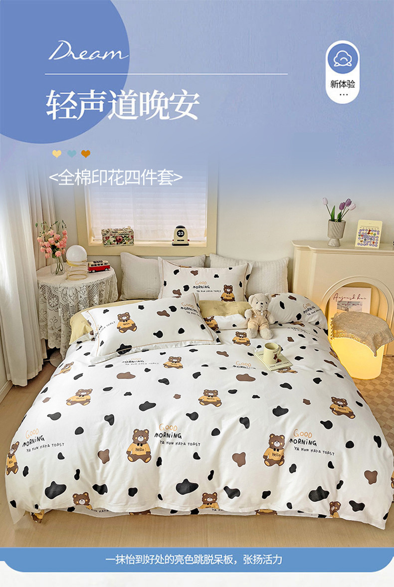 商品名称:乐童家纺 2024新款网红直播爆款吊边+一字绣工艺款四件套(十二) 斑点熊