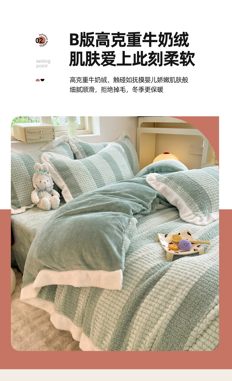 (总)丝印良品 2025秋冬新款300克条纹兔绒床笠三件套,床笠款-雪灰,床笠款-卡其,床笠款-魔幻灰,床笠款-墨绿,床笠款-森林绿,床笠款-棕灰