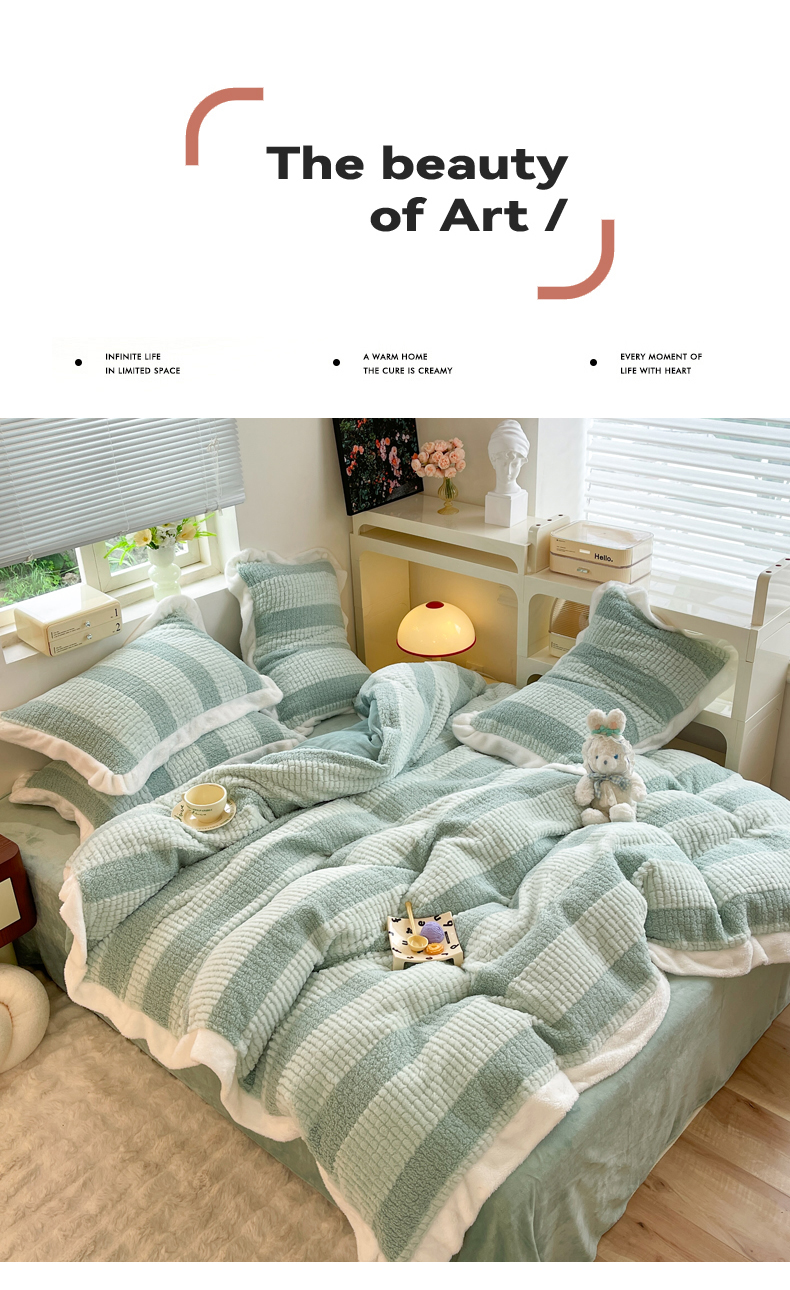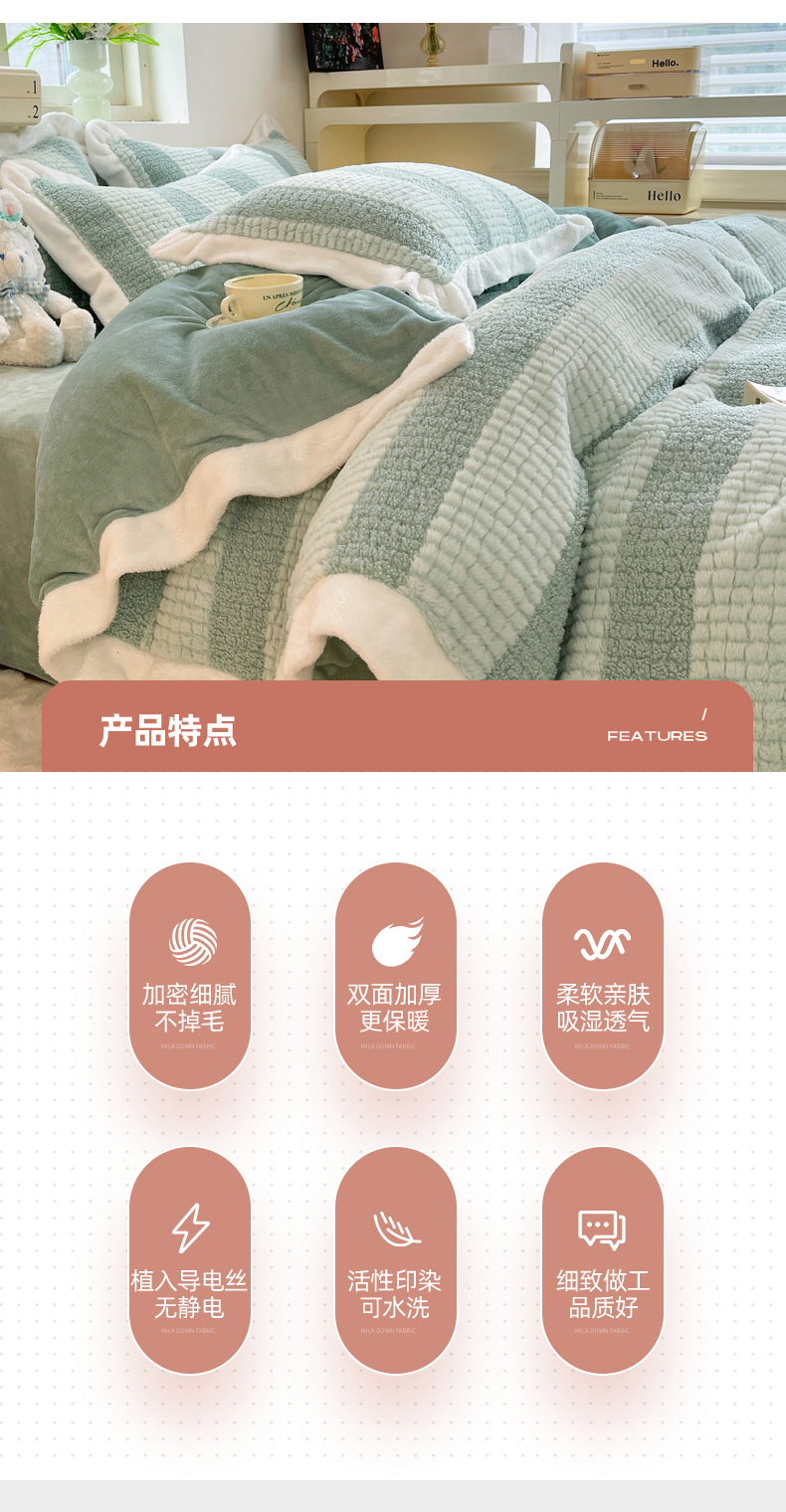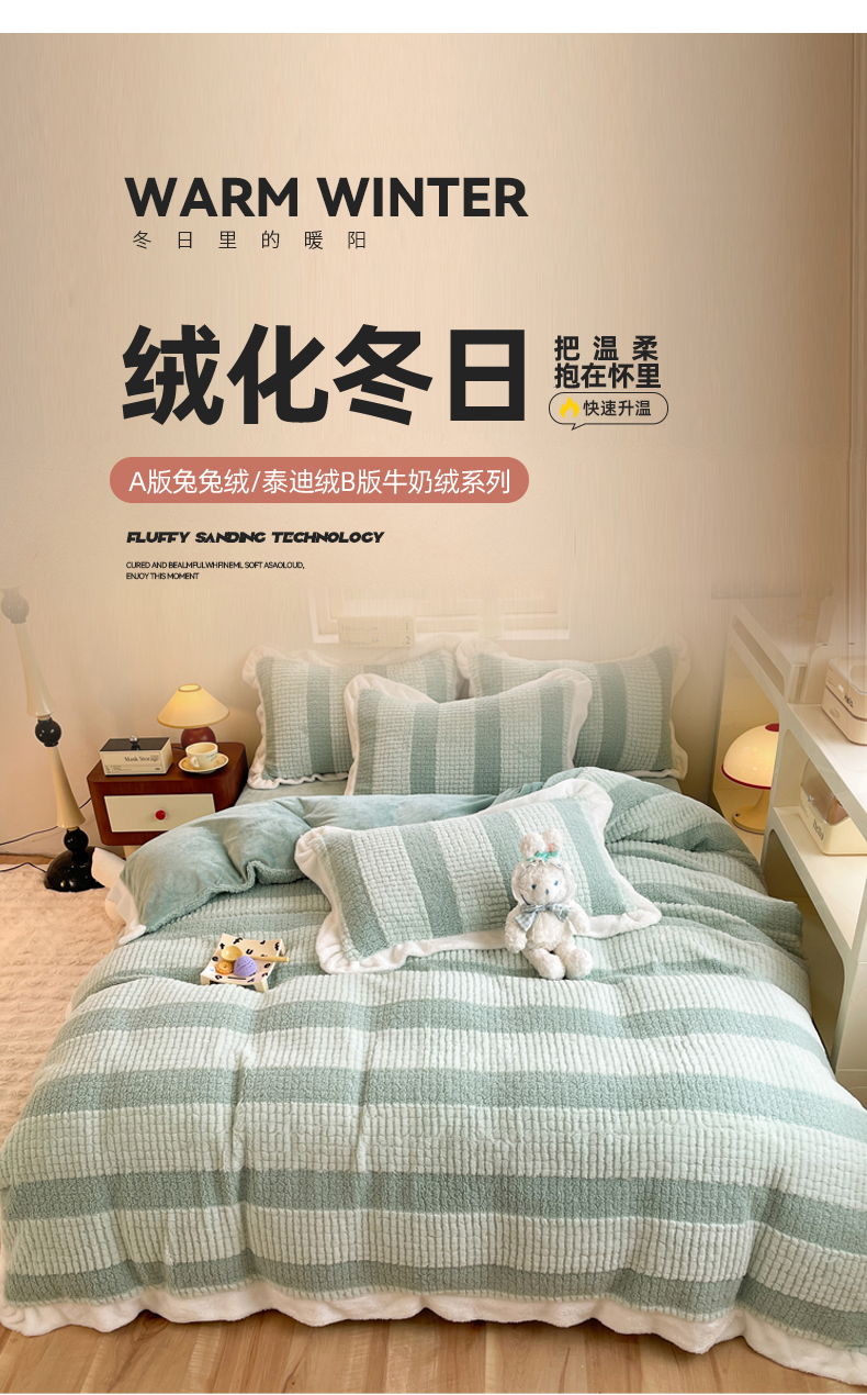 商品名称:丝印良品 2023新款泰迪绒兔绒牛奶绒四件套 泰迪绒-清新绿