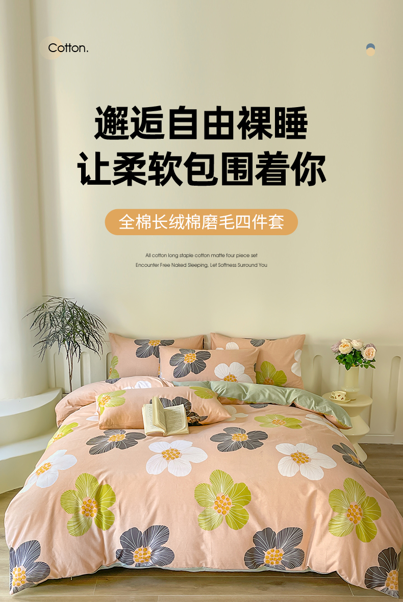 • 91家纺网 家纺一手货源 找家纺 棉乐町家居 2025新款全棉长绒棉磨毛四件套 朵娜