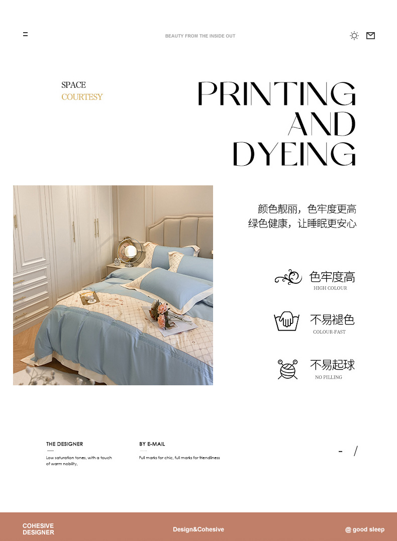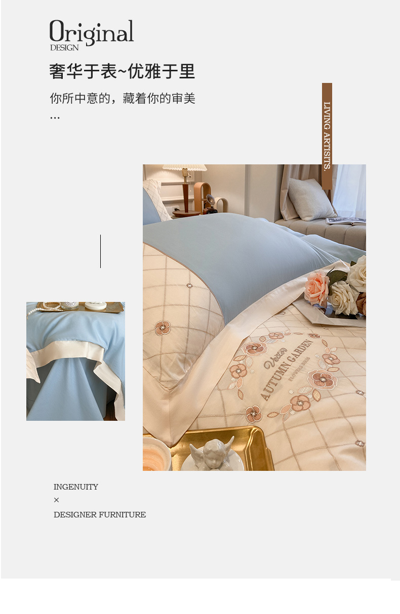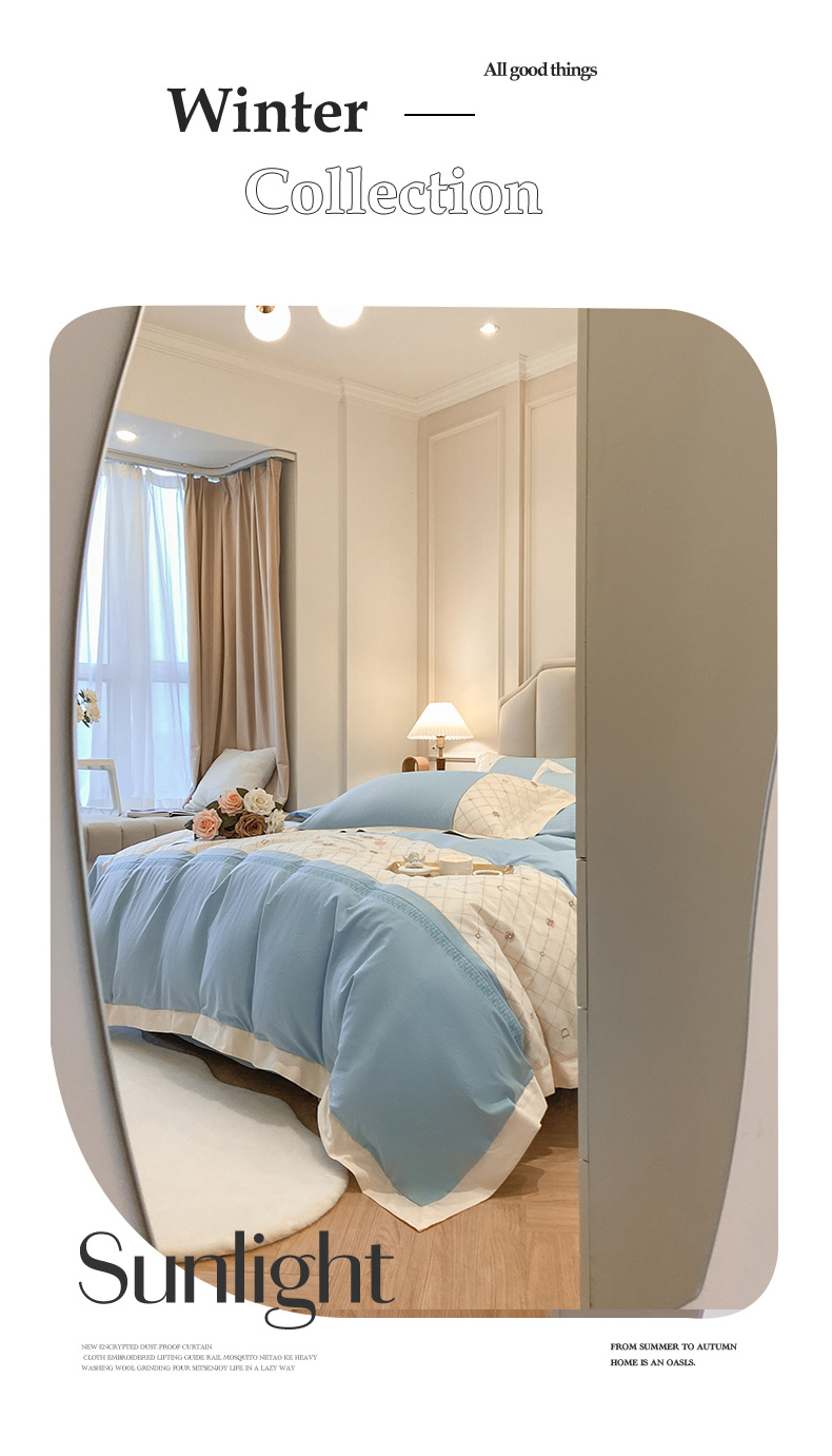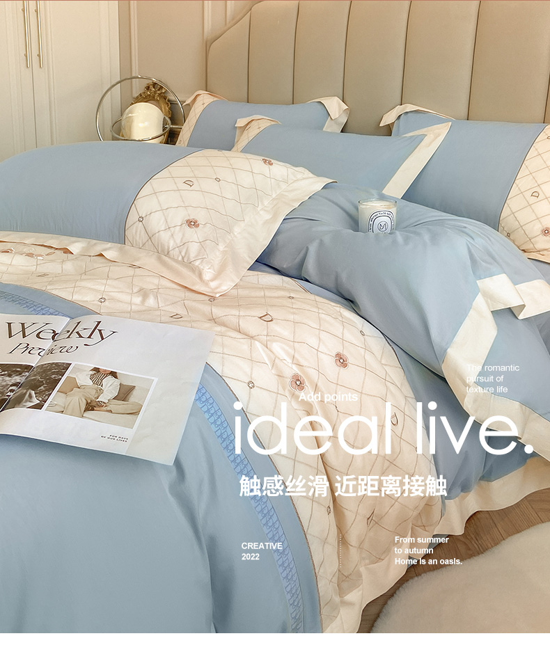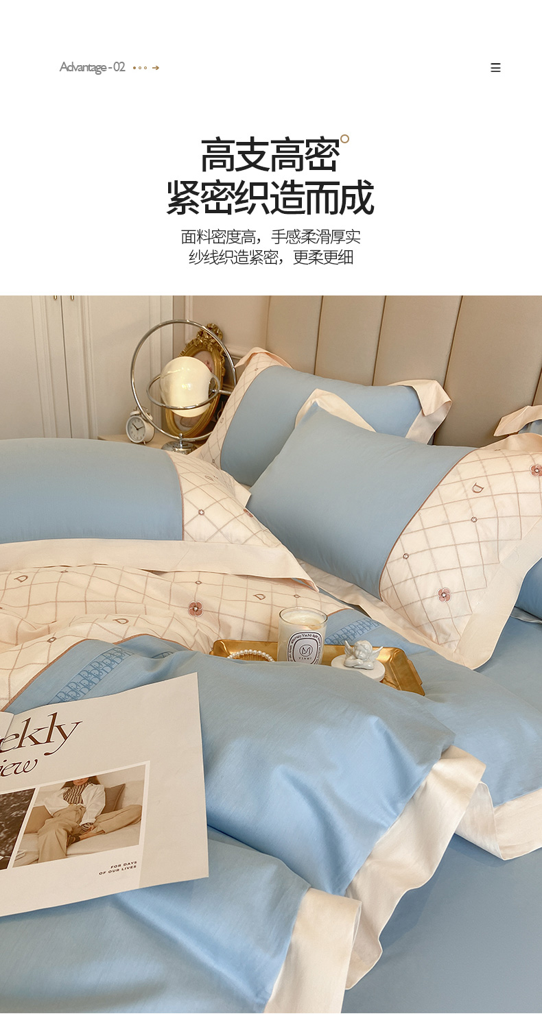 丝印良品 2023秋冬保暖60S全棉刺绣拼接菲曼系列四件套 菲曼-纯净蓝