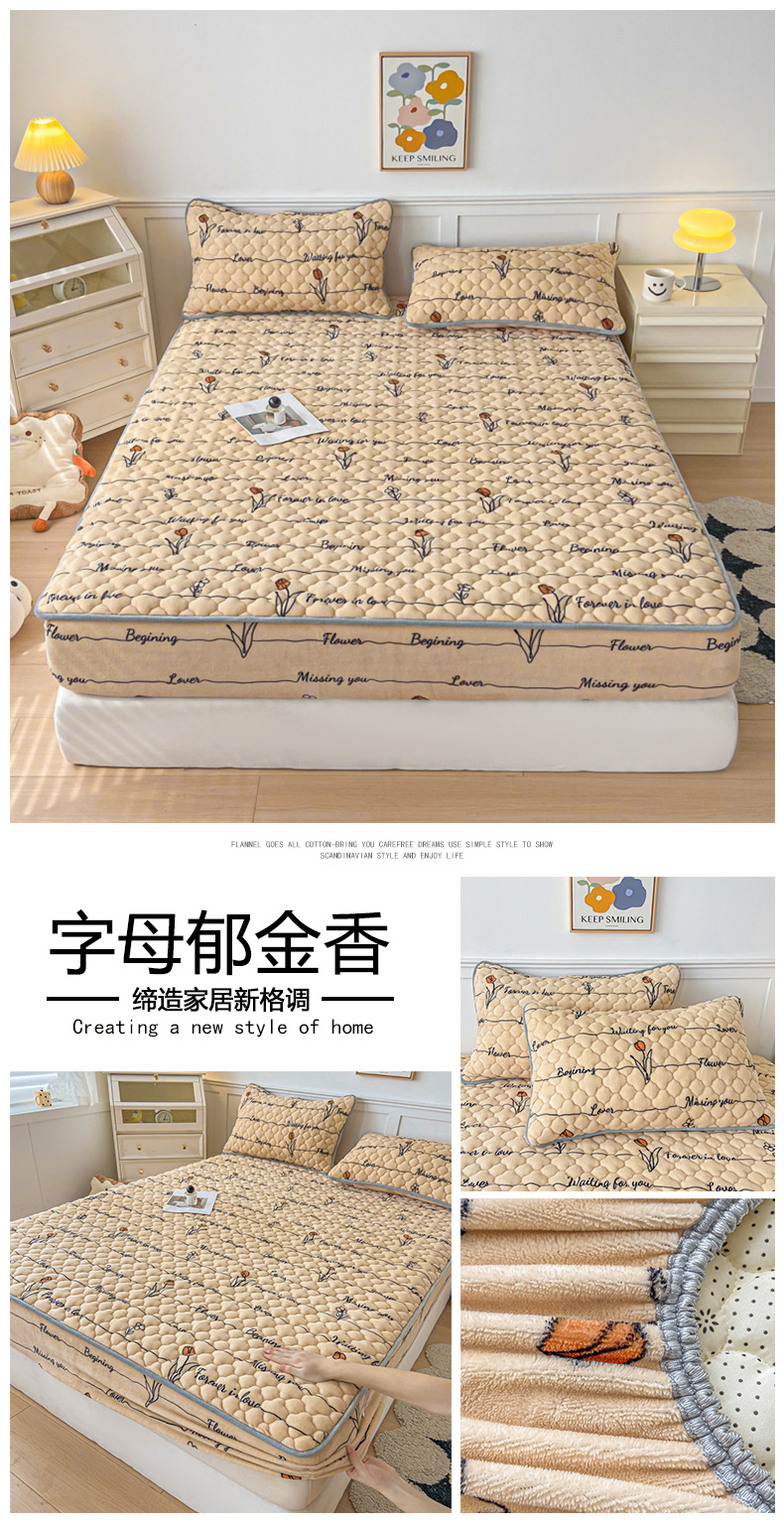 商品名称:康纳利 2023新款纯色牛奶绒印花牛奶绒床笠夹棉床笠 字母郁金香