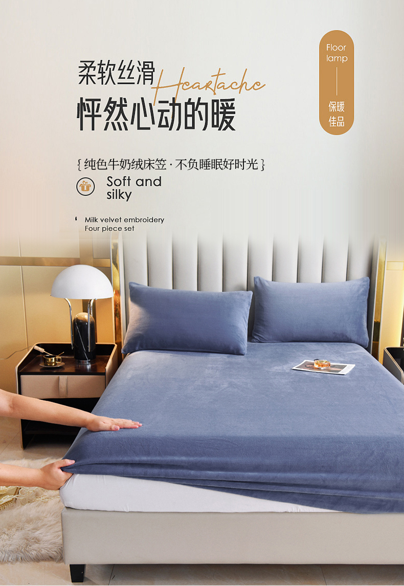 • 91家纺网 家纺一手货源 找家纺 七仙女家纺 2025新款A类230g高克重牛奶绒单品床笠 风暴蓝