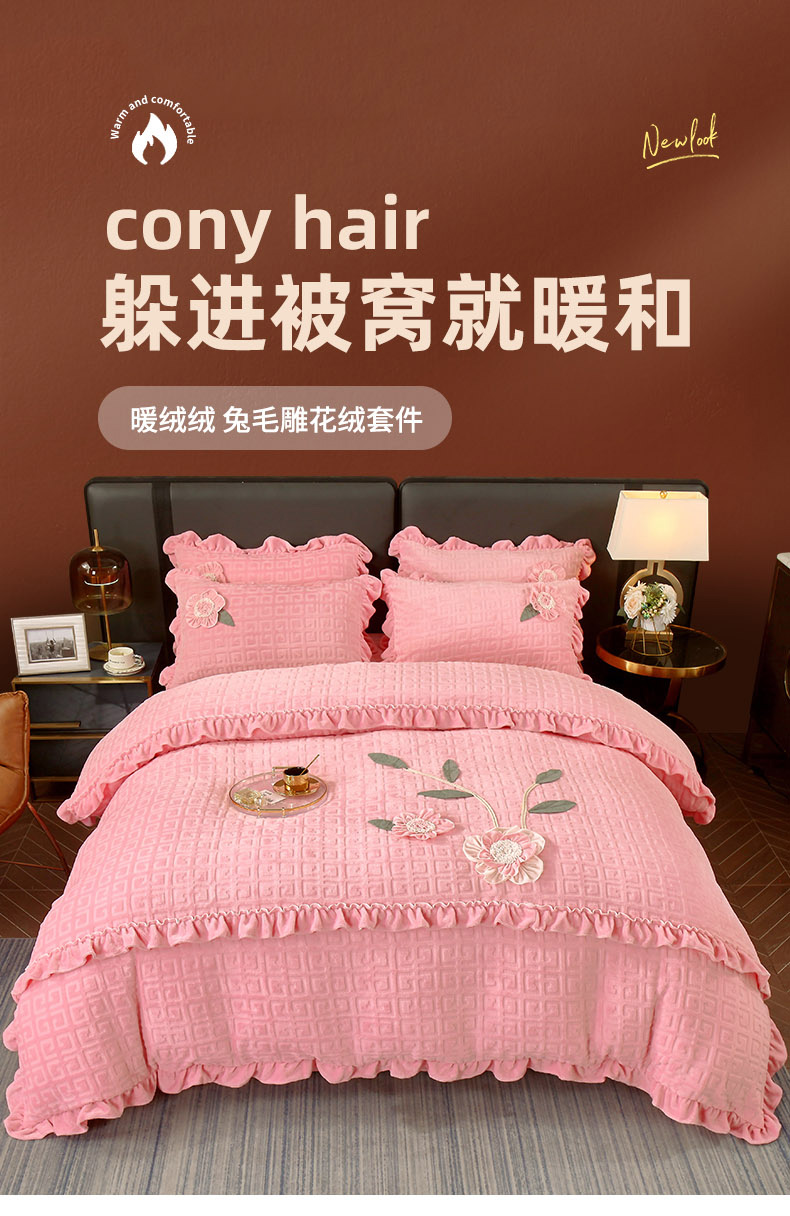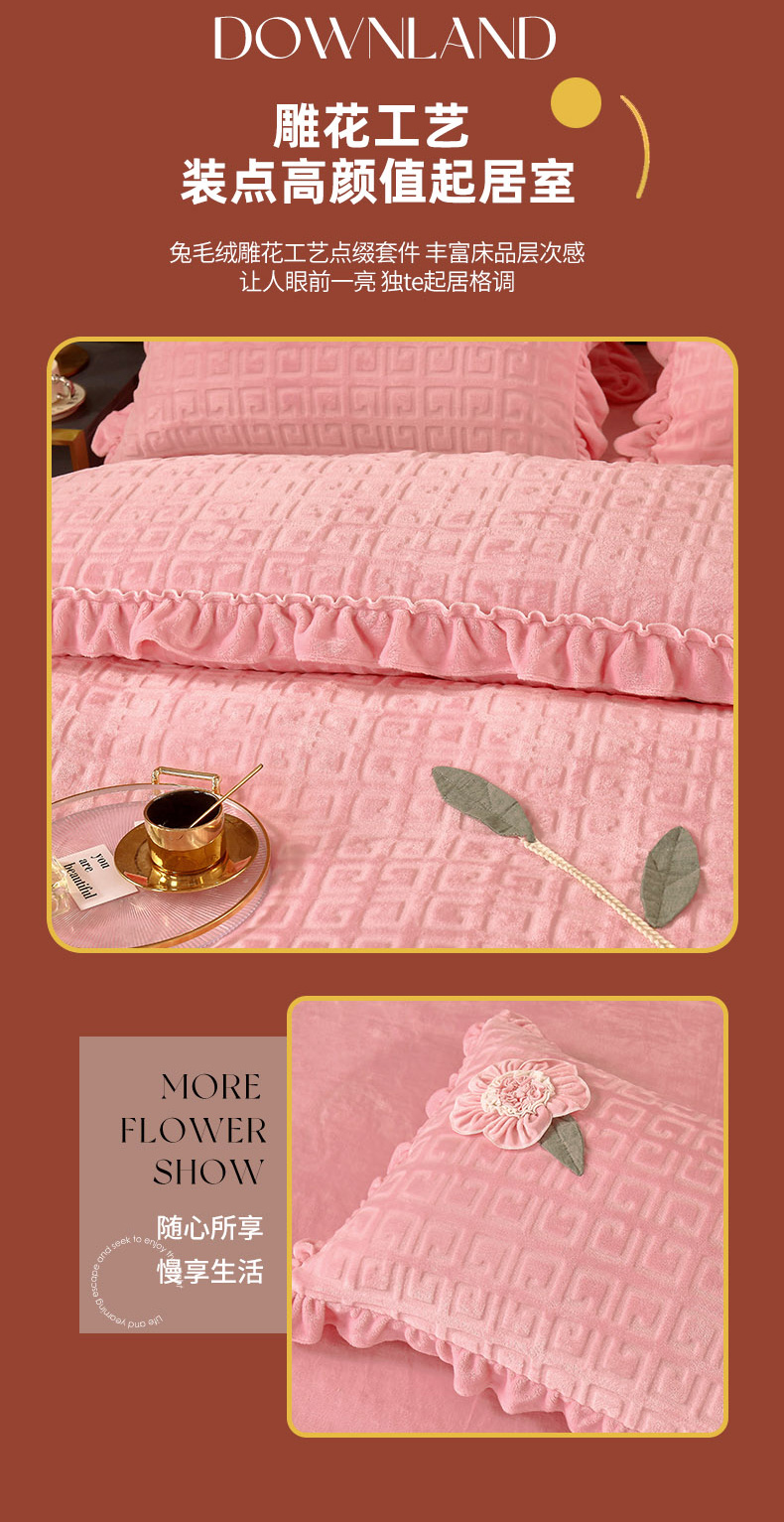 (总)兴美佳家纺 2023新款高克重兔毛绒雕花手工盘花四件套