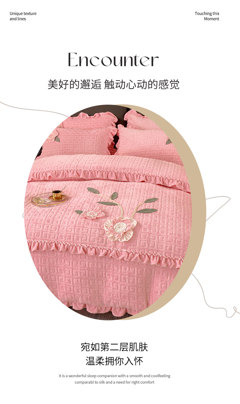 (总)兴美佳家纺 2025新款全加棉泡泡棉亲肤绗缝四件套-爱的家园,爱的家园-藕粉,爱的家园-米黄,爱的家园-浅兰,爱的家园-浅绿
