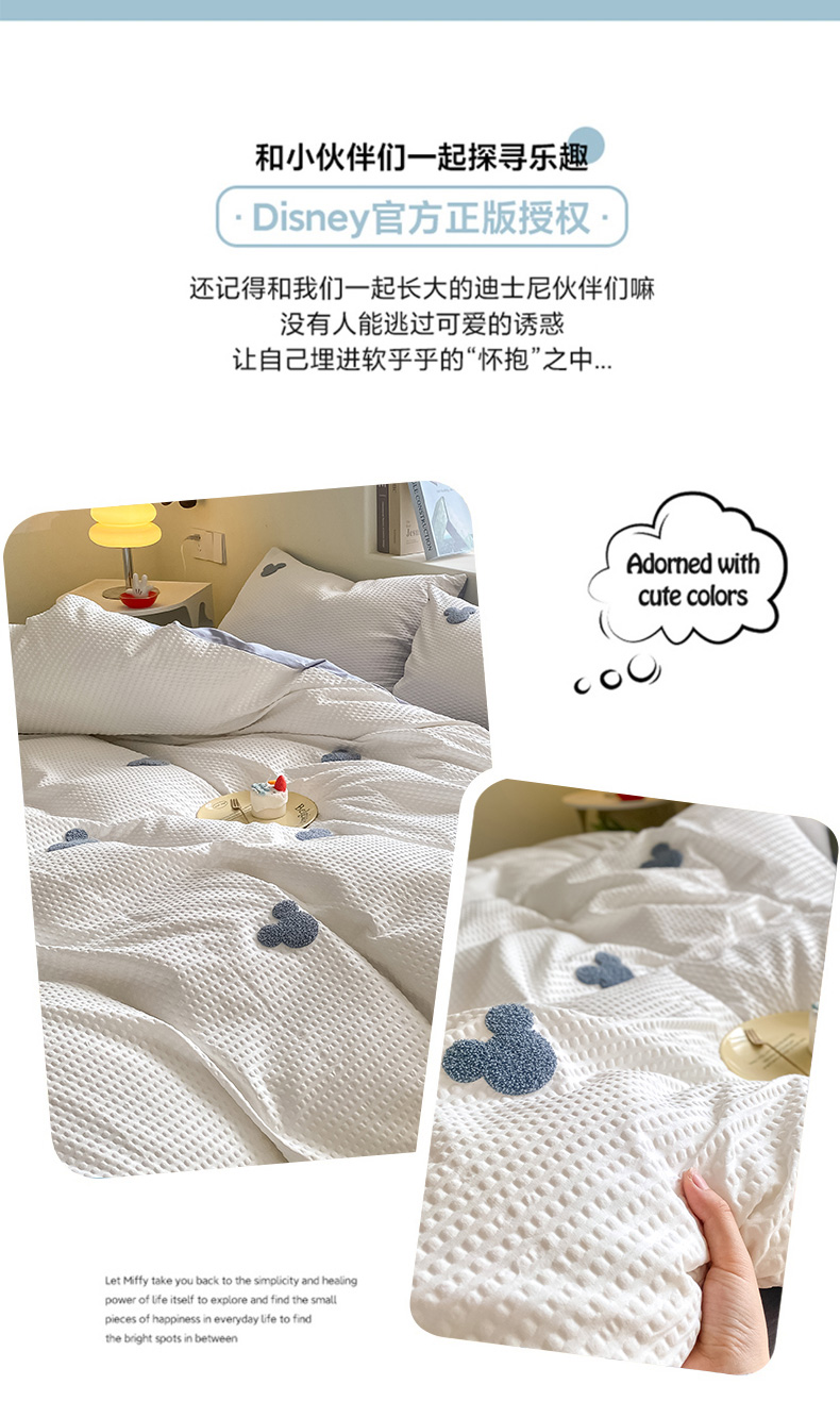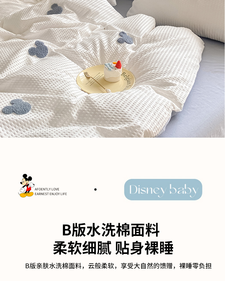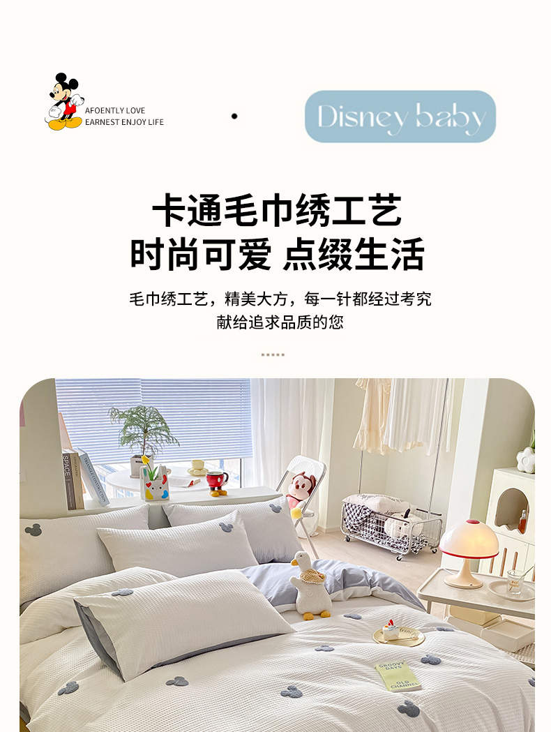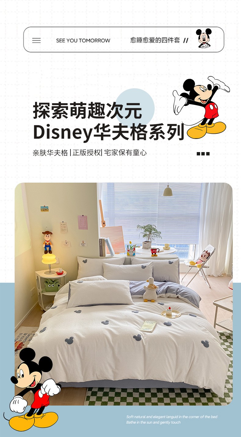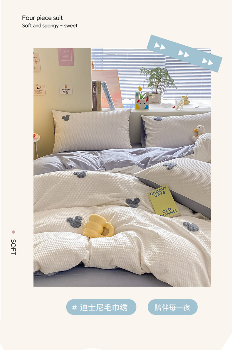 当前位置: 91家纺网 > 商品网购 > 床品套件 > 四件套 > 水洗棉四件套 > 眠帛家居 2024新款华夫格迪士尼米奇毛巾绣系列 米奇蓝灰